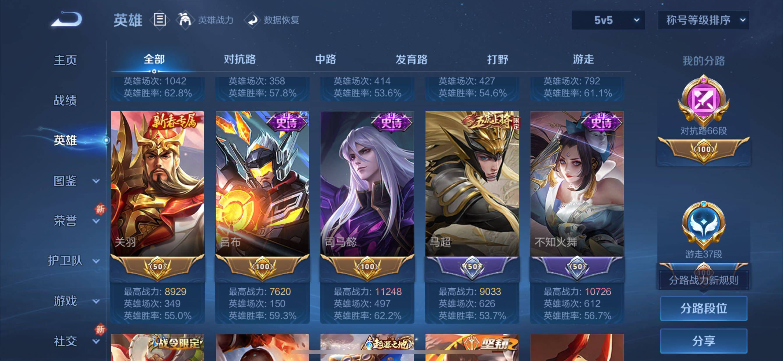 可换绑【小国标白起1.5万 小国标项羽1.66万 对抗路66段 金标万战马懿