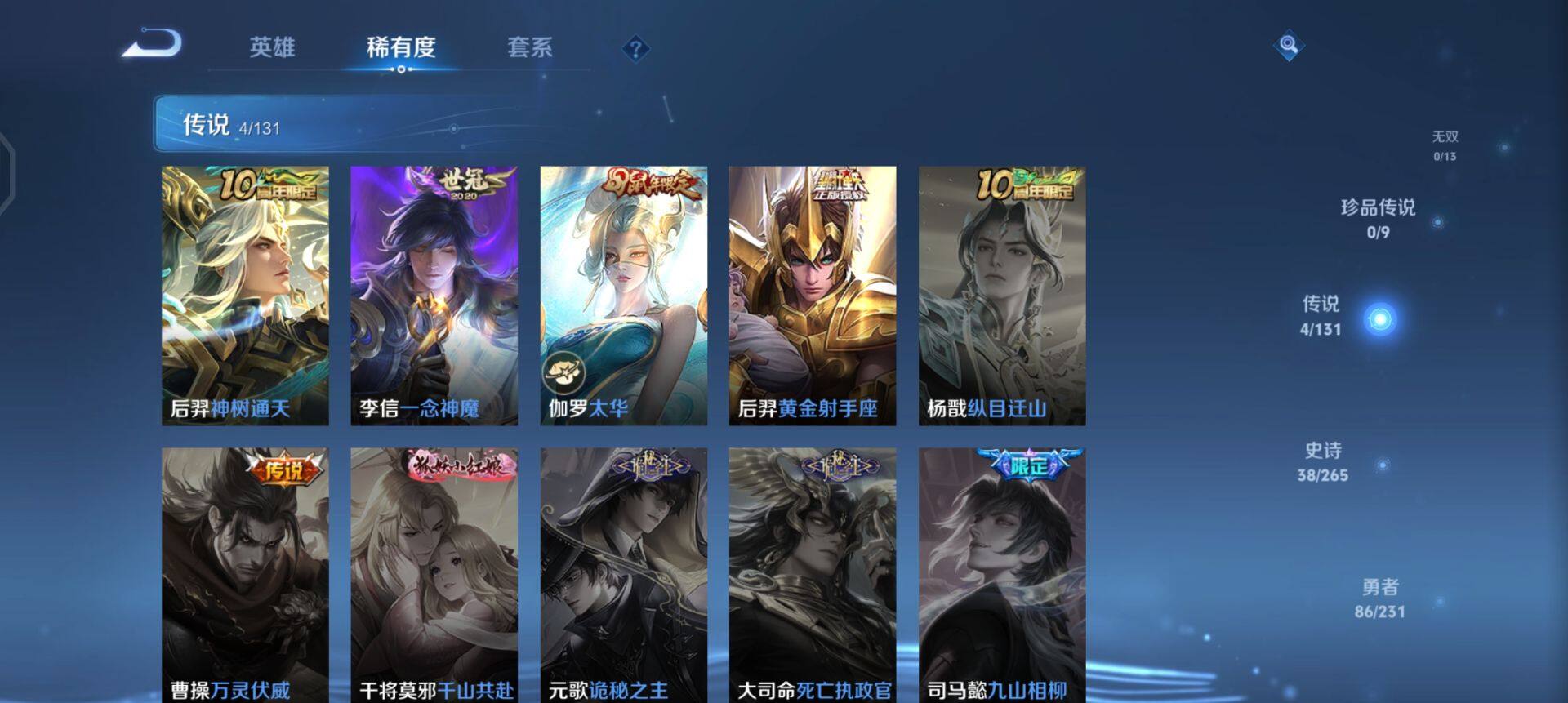 【传说皮肤】:后羿神树通天,李信一念神魔,伽罗太华,后羿黄金射手座