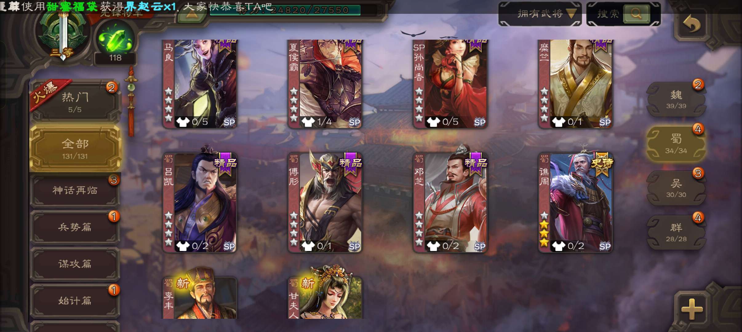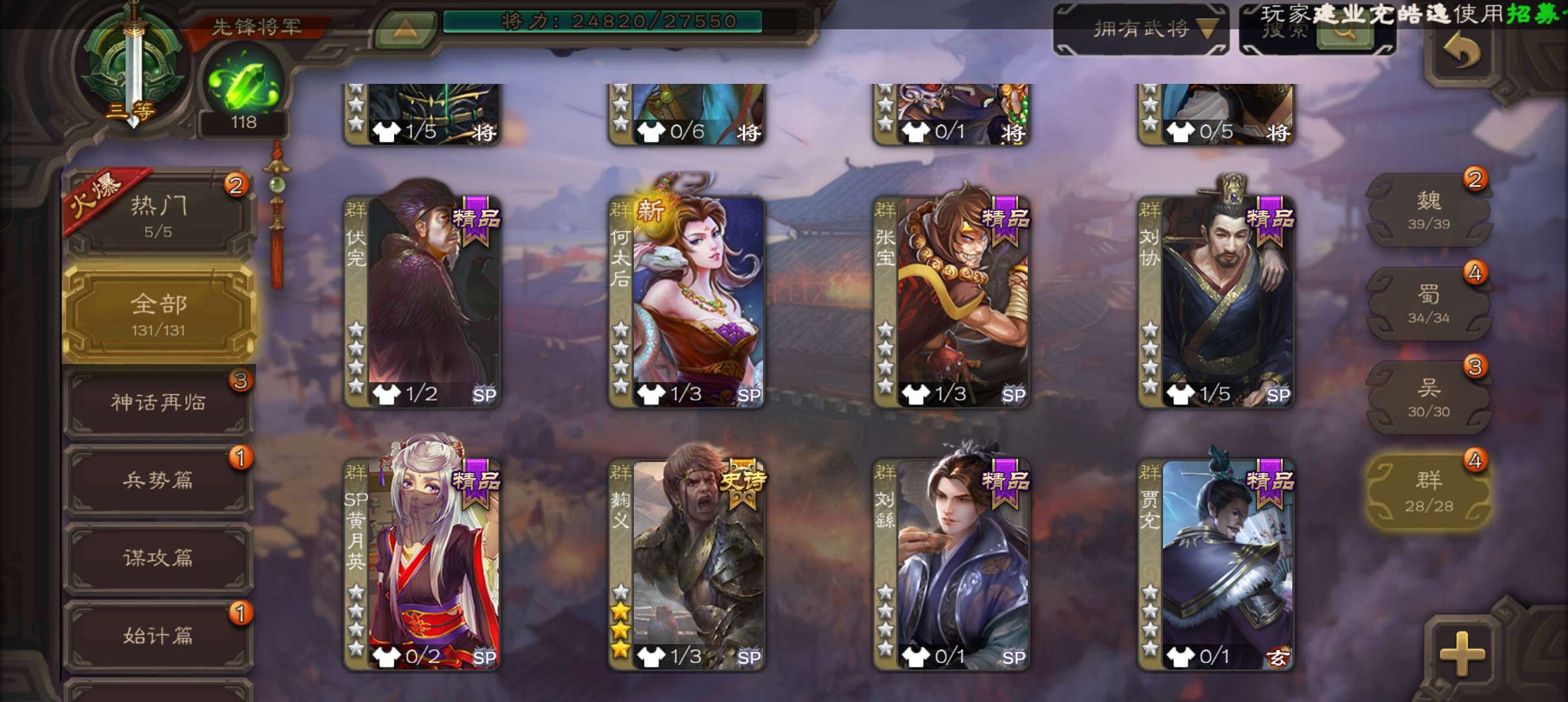史诗武将数量: