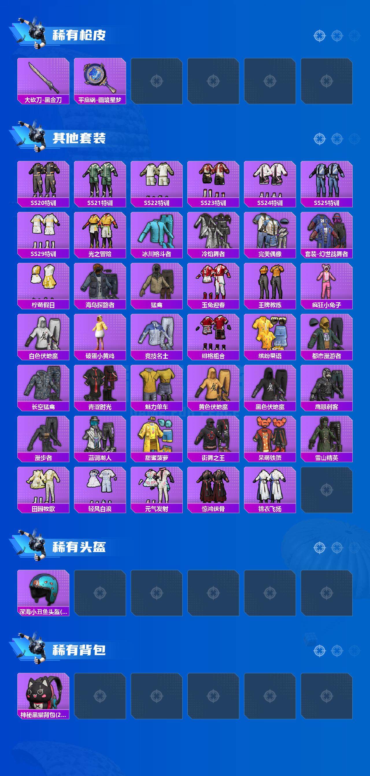 【粉色枪皮等级】:AKM-绿萝繁花(五级),AKS-74U-森灵之息(四级),Kar98K-巳巳如意(五级),M249-绝对恒星(七级),DP-28-豹影疾电(五级)