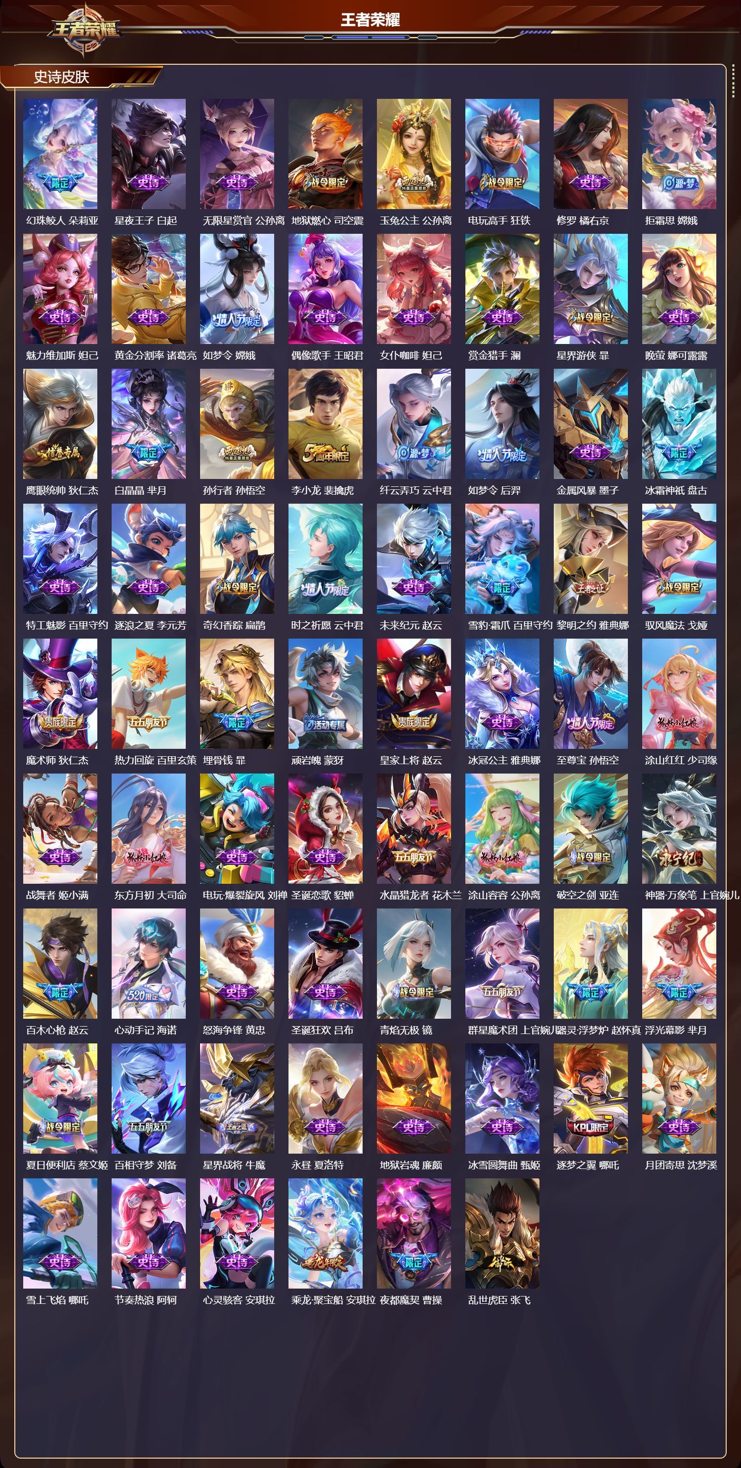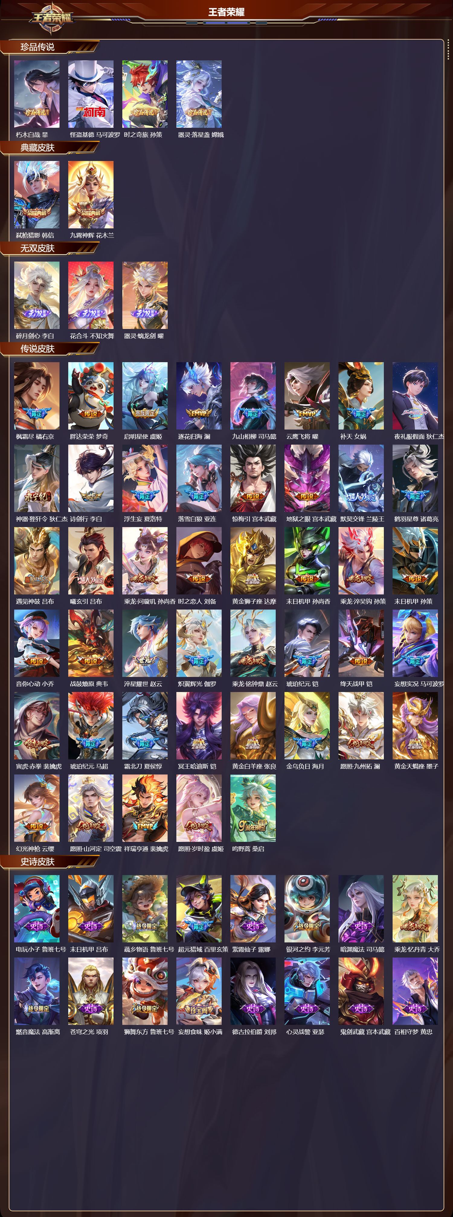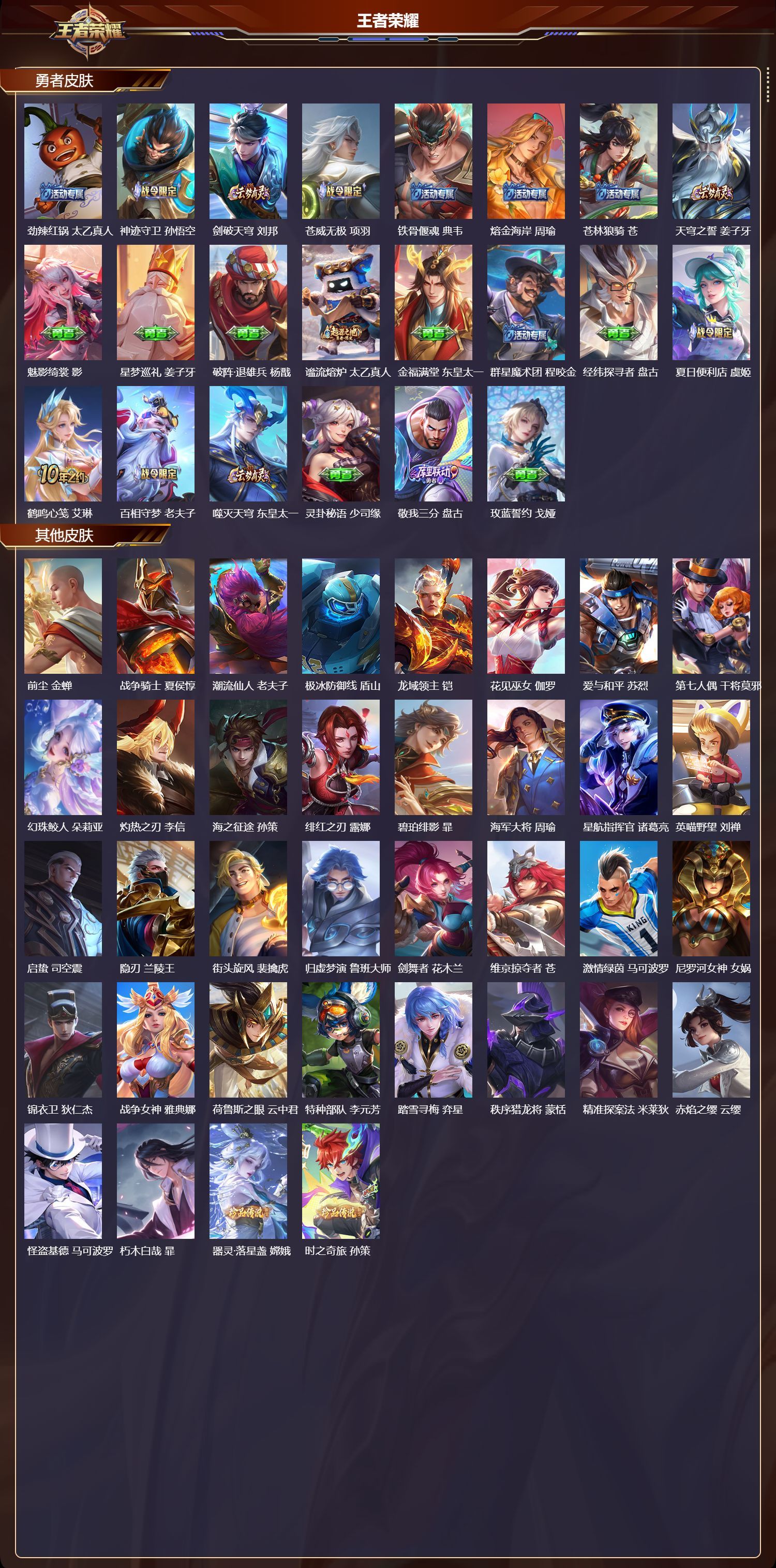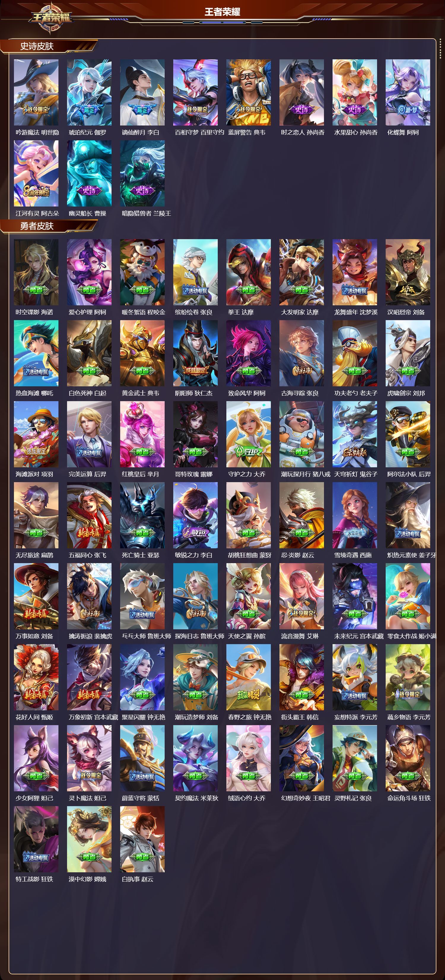 安卓QQ/最强王者/263皮肤/125英雄/2典藏/0珍品无双/3无双/4珍品传说/45传说/97史