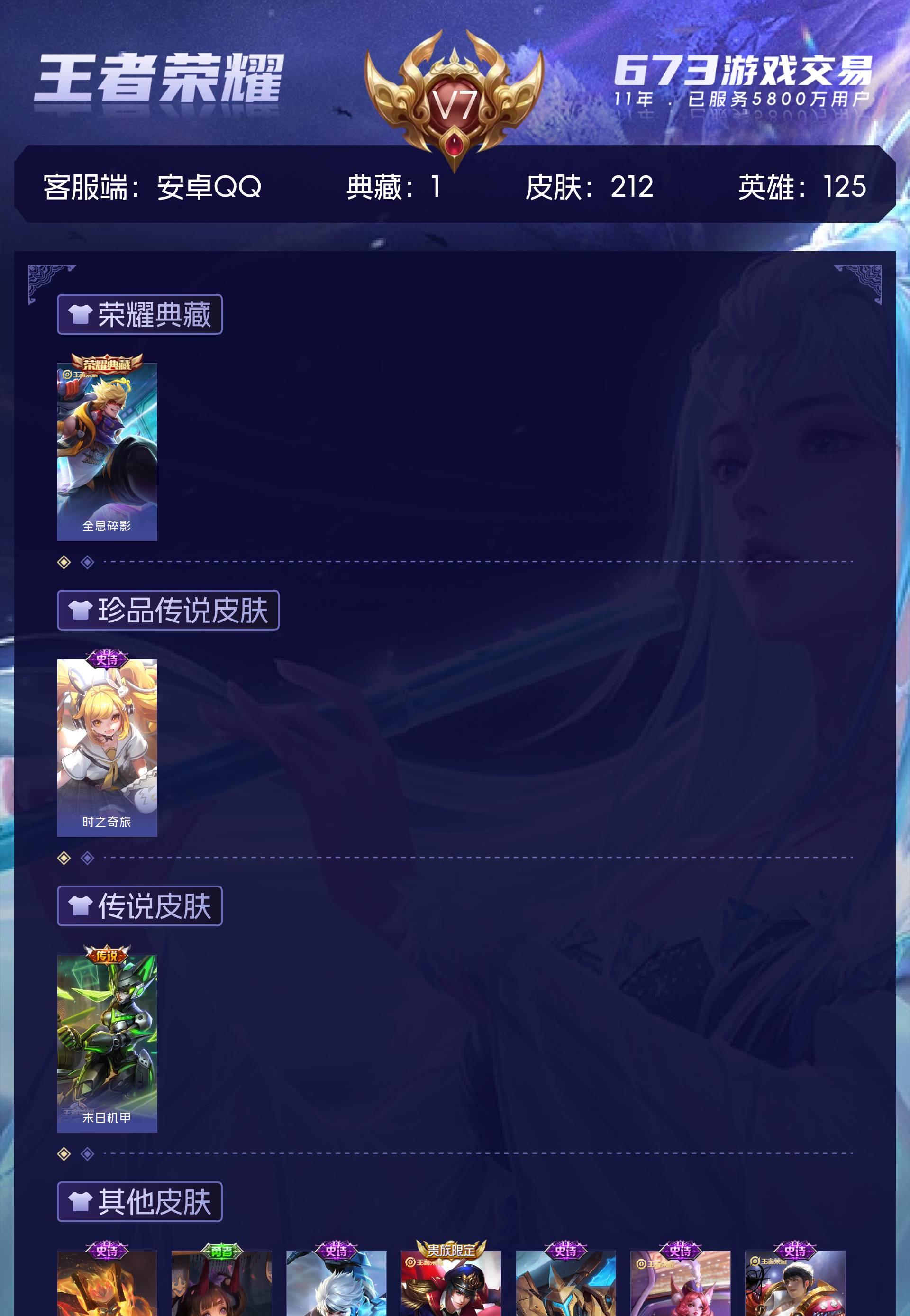 皮肤212 英雄125 永恒钻石 荣耀典藏1 传说1 其他皮肤82-安卓Q-V3-永恒钻石IV段位-125英雄-212皮肤-1典藏皮肤-1传说-5