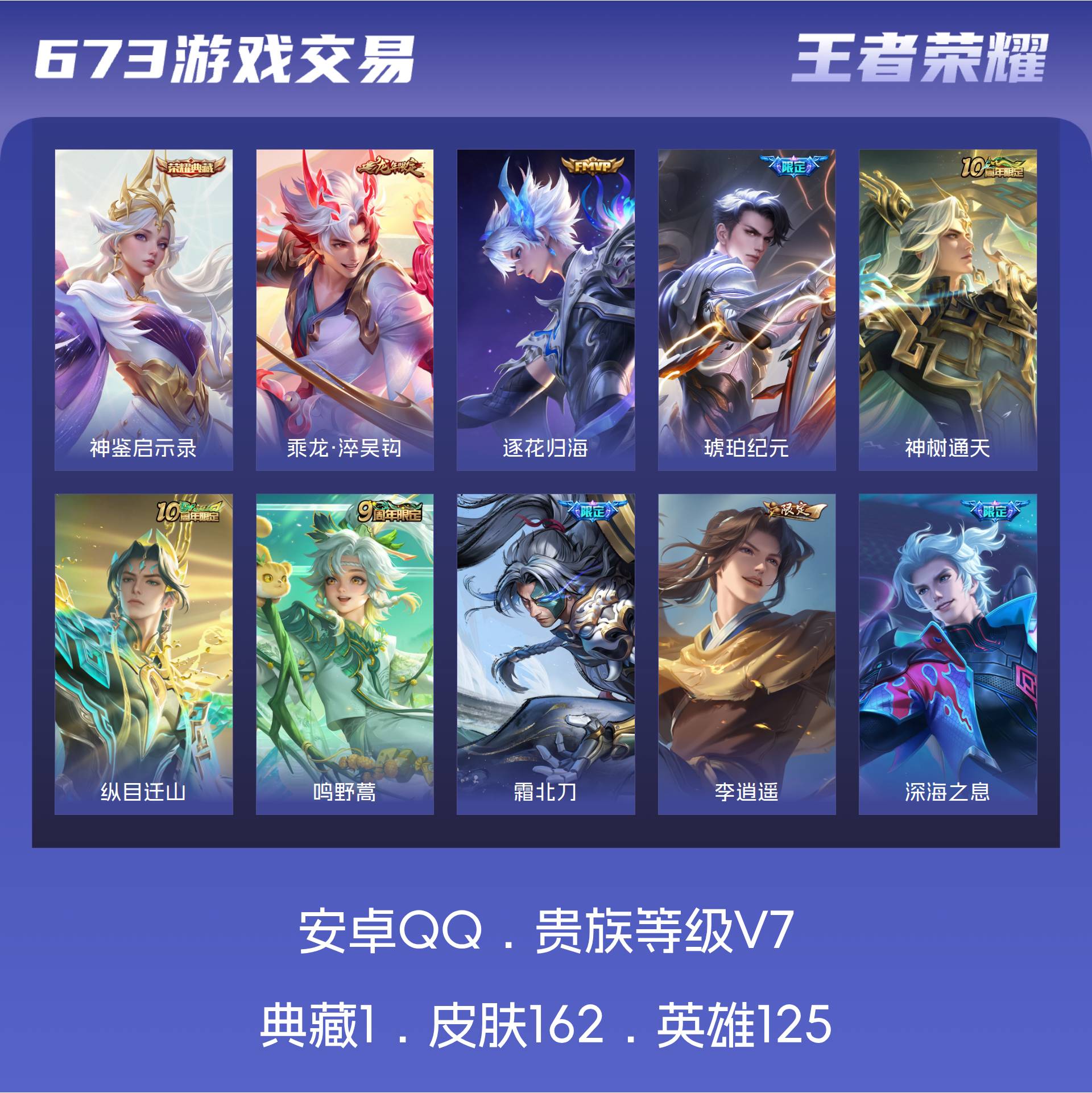 皮肤162 英雄125 至圣王者 荣耀典藏1 传说16 其他皮肤56-安卓Q-V7-最强王者段位-125英雄-162皮肤-1典藏皮肤-16传说-49