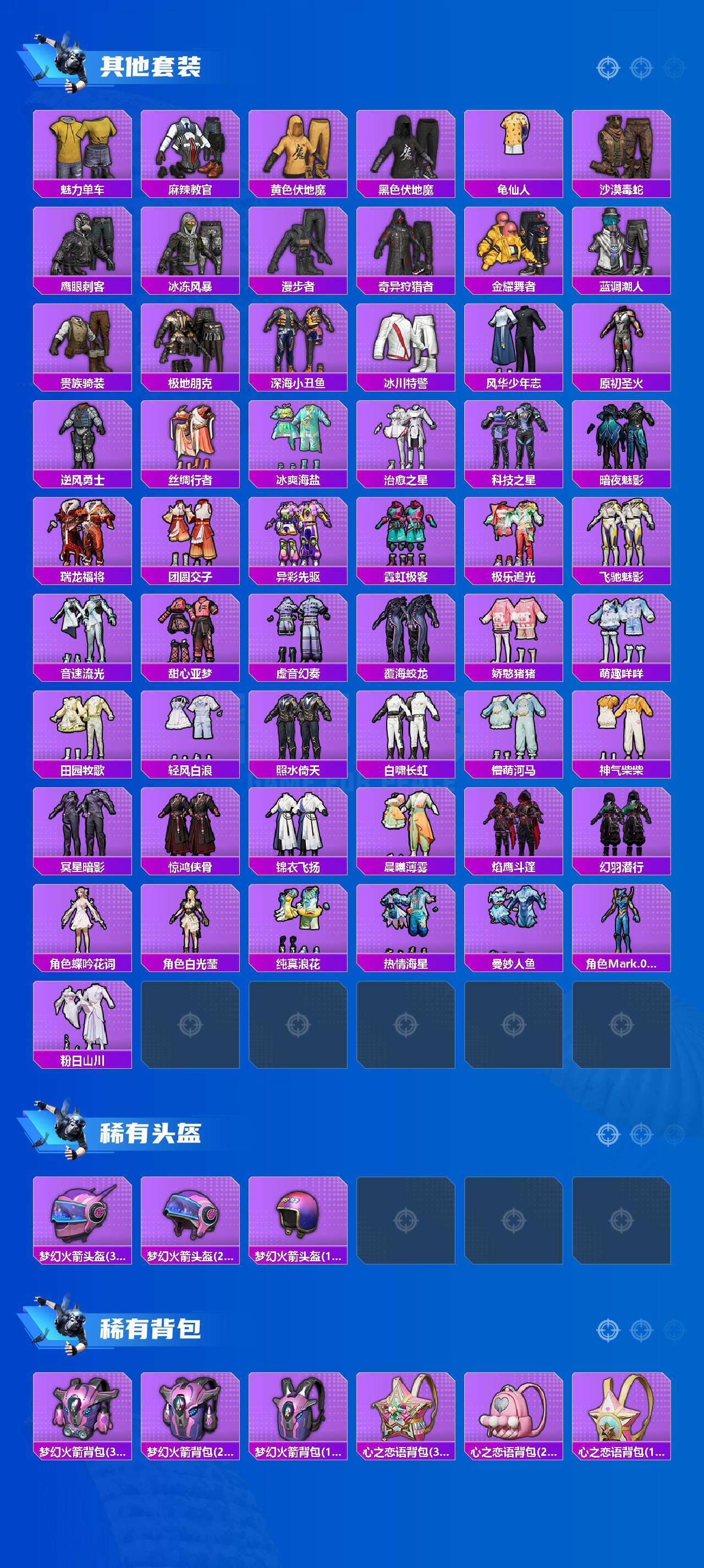 【粉色套装】:粉装-数码大师,粉装-梦幻火箭,粉装-星之彼岸,粉装-暗夜玫瑰,套装-创世·救赎,角色-智耀战神,角色-星渊
