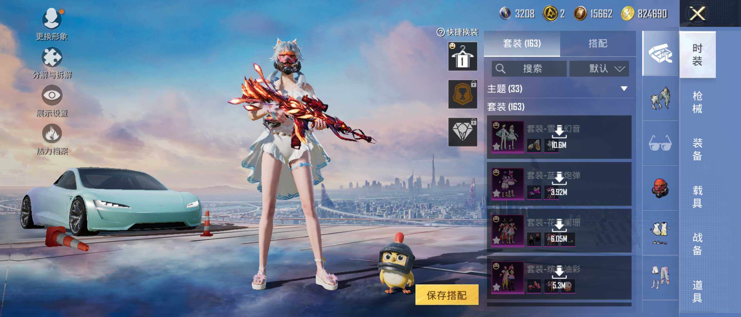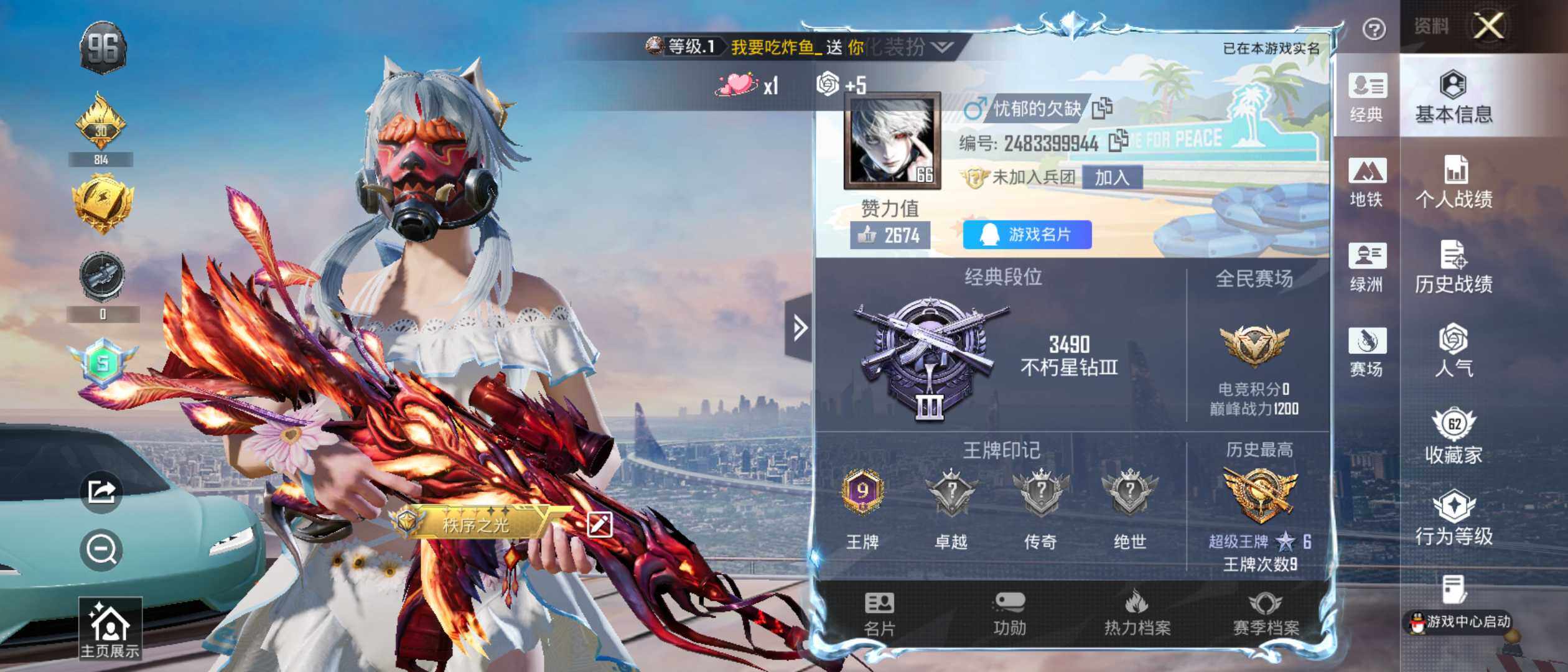 安卓 手Q-4粉装-3特效枪-3载具-3粉色飞行器-62581热力值-9王牌印记-163套装-184枪皮