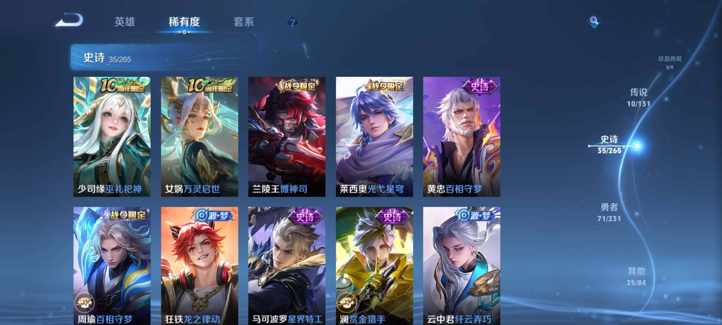 皮肤141 英雄123 至圣王者 传说10