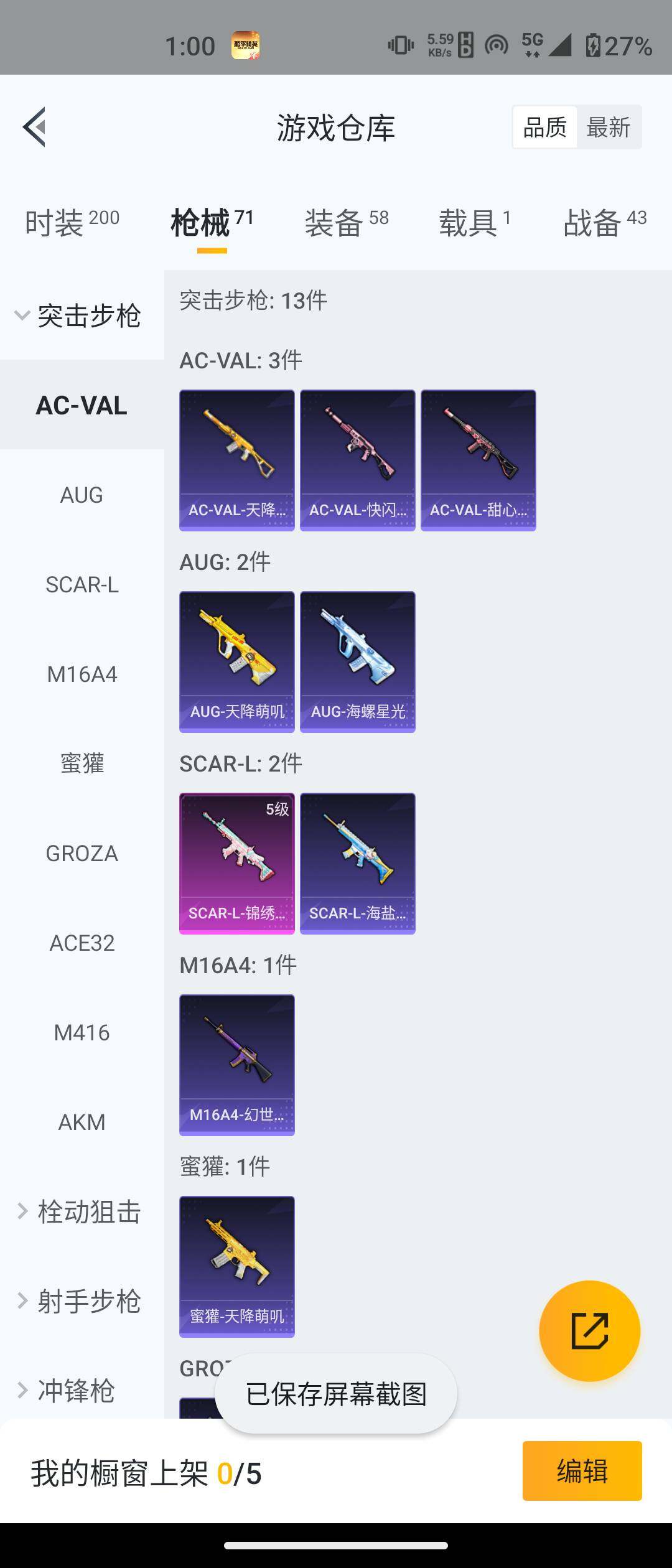 【粉色枪皮等级】:SCAR-L-锦绣绵绵(五级),野牛-青空秋雨(四级),Kar98K-巳巳如意(四级)