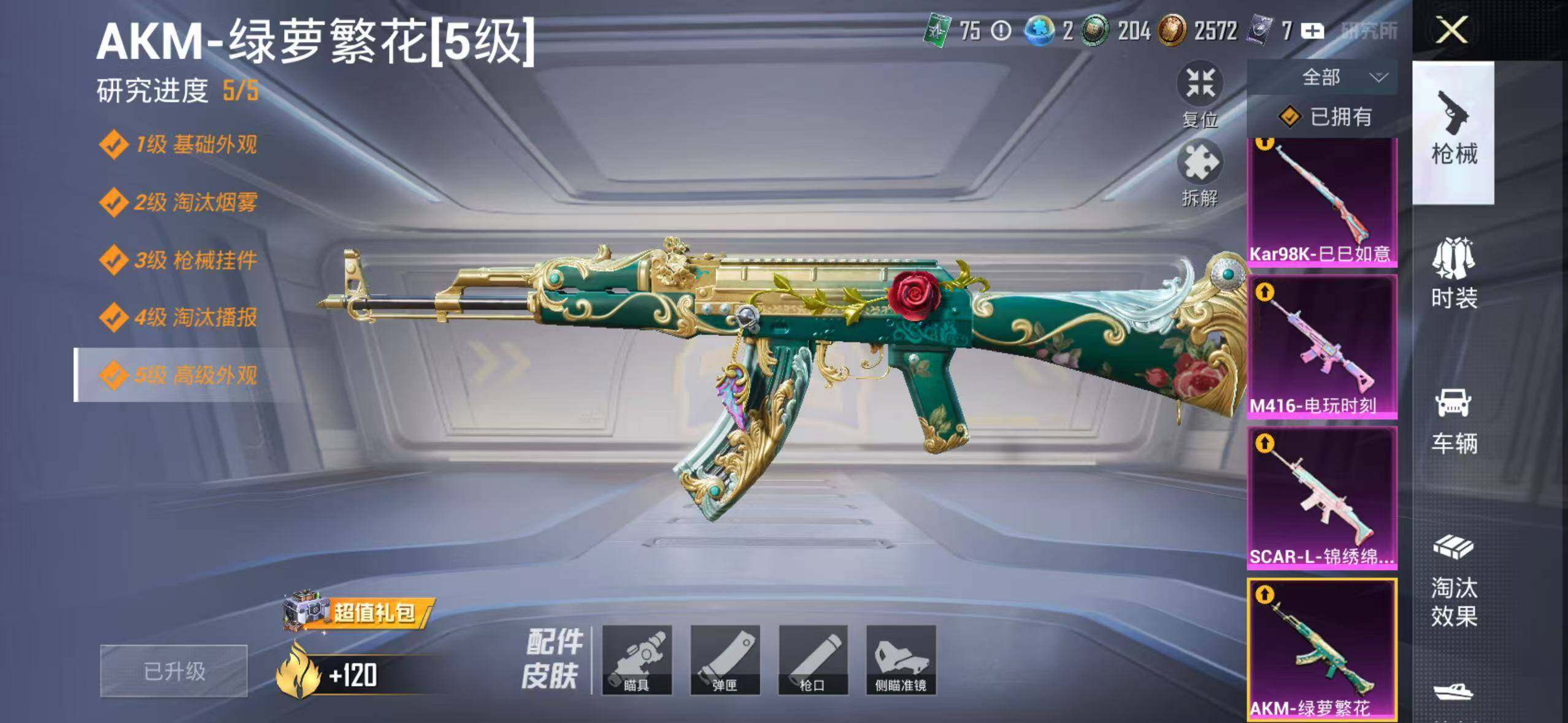 96套装/枪械5/装备108/战备74/热力值28947/五级AKM-绿萝繁花