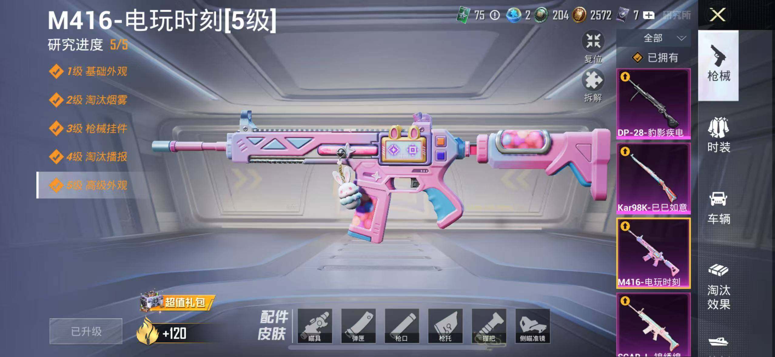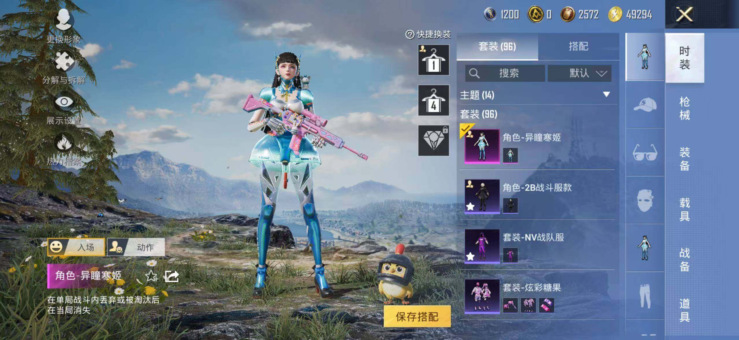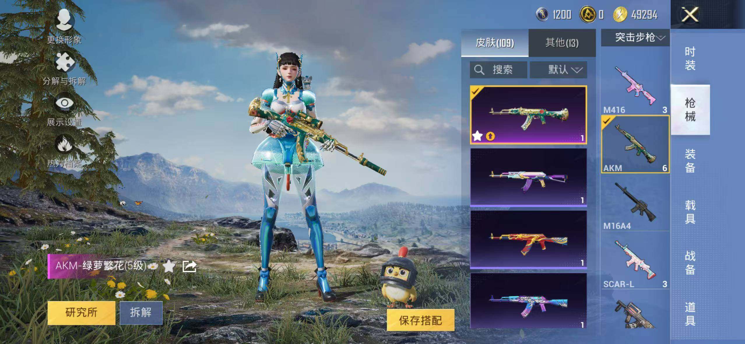 96套装/枪械5/装备108/战备74/热力值28947/五级AKM-绿萝繁花/五级SCAR-L-锦绣绵绵/五级M416-电玩时刻/五级Kar98K-巳巳如意/五级DP-28-豹影疾电/角色-2B战斗服款/套装-龟仙人/熔岩游骑兵连帽夹克/角色-异瞳寒姬/AKM-绿萝繁华/SCAR-L-锦绣绵绵/M416-电玩时刻/Kar98K-巳巳如意/DP-28-豹影疾电/甜心宝贝降落伞/莲影清波降落伞/江