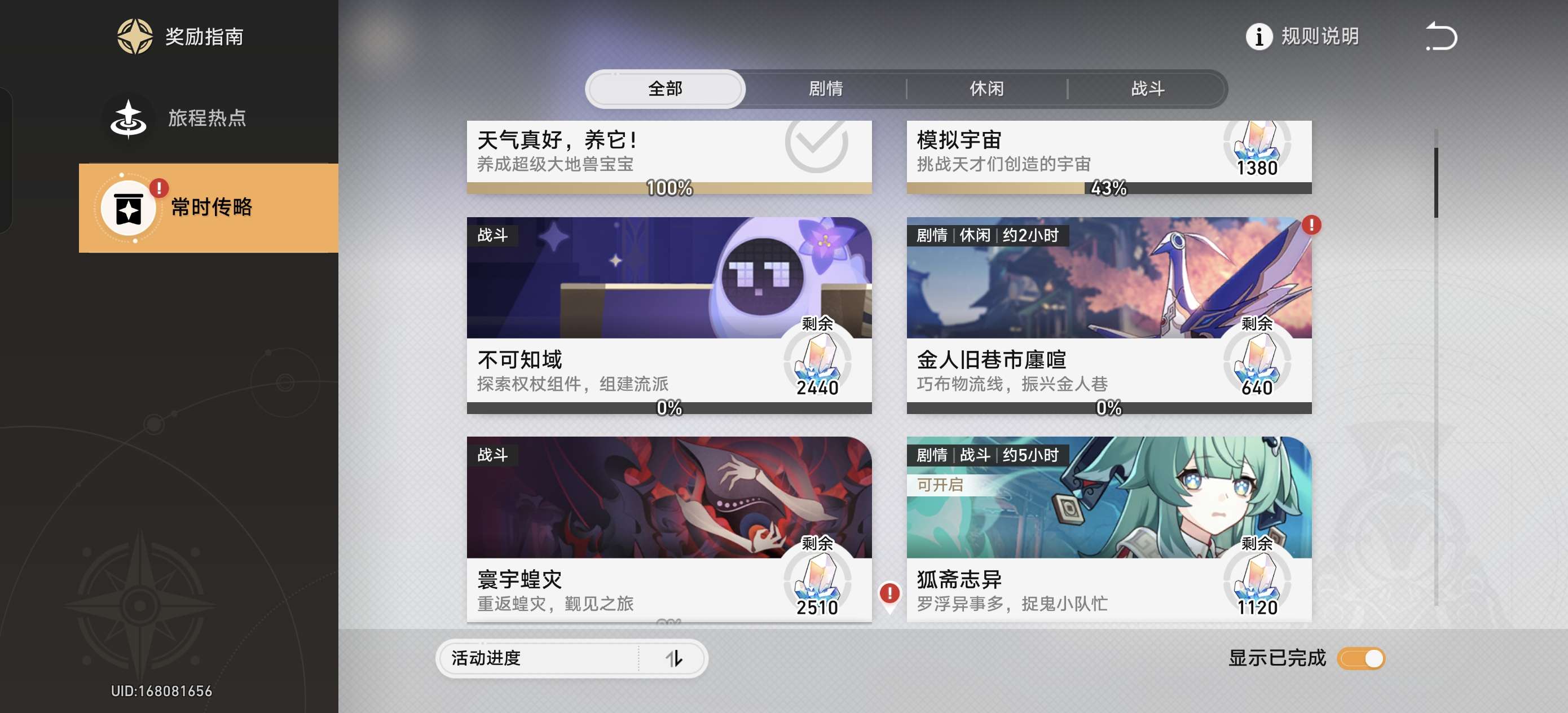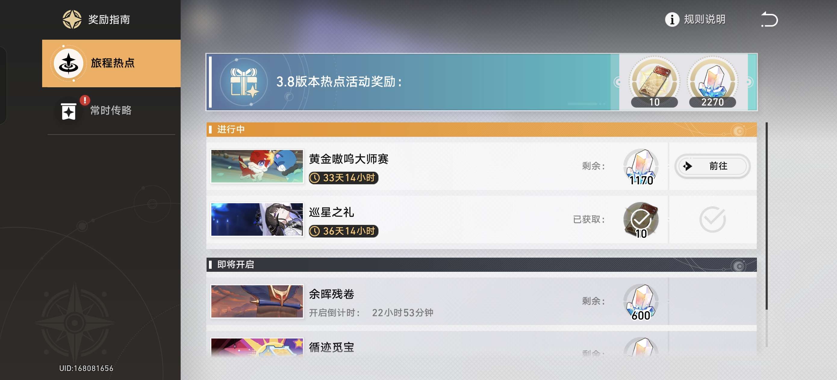 自抽号 321抽,翁法洛斯还没解锁,其他地图宝箱没找齐,活动有的没做完