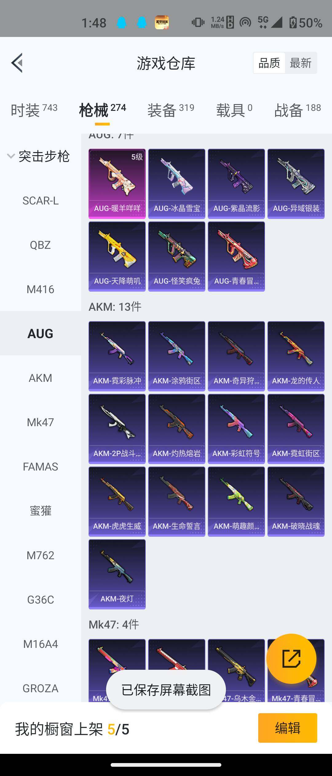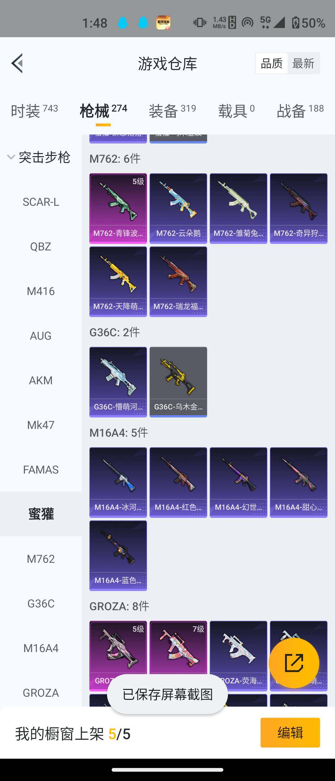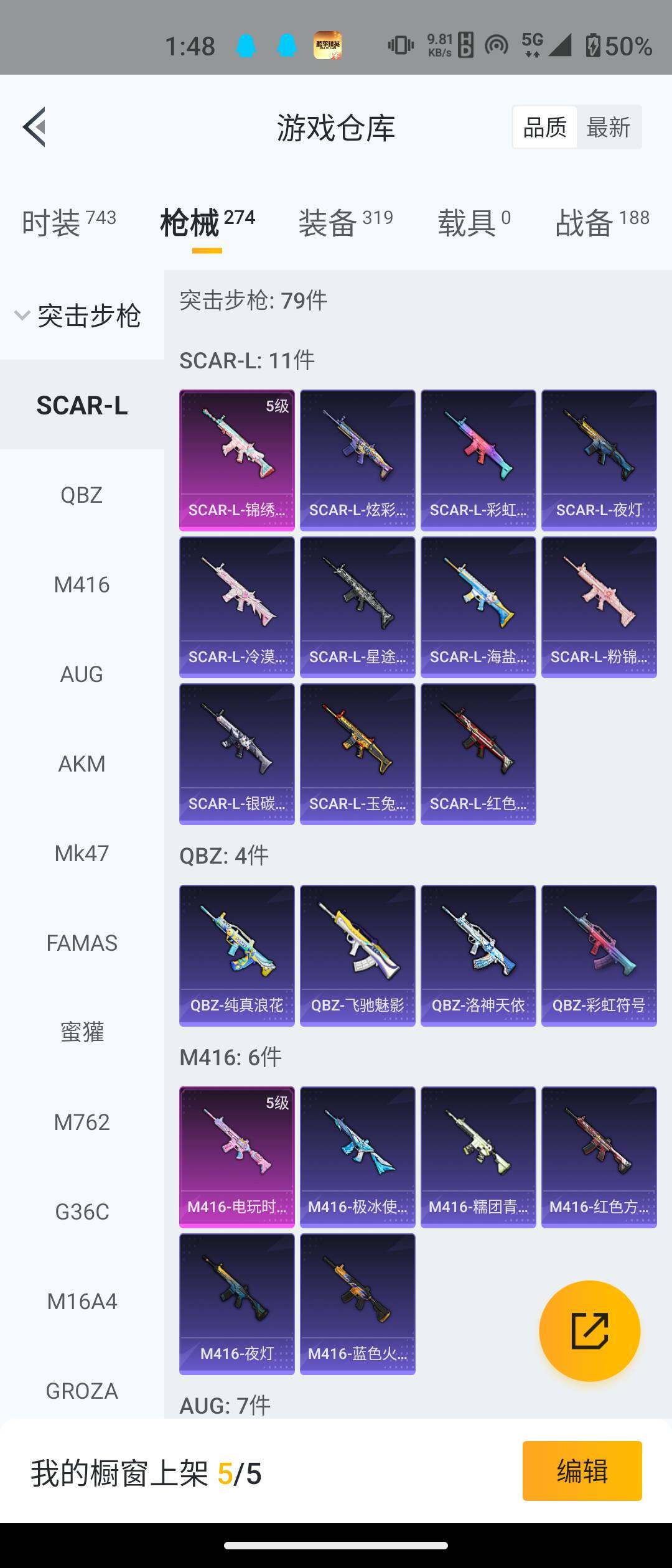 【粉色枪皮等级】:SCAR-L-锦绣绵绵(五级),M416-电玩时刻(五级),GROZA-旋