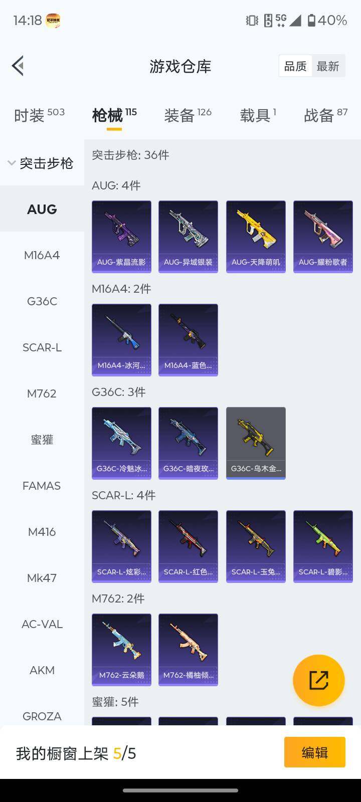 安卓 手Q-5粉装-2特效枪-1载具-1粉色飞行器-39038热力值-7王牌印记-126套装-115枪皮