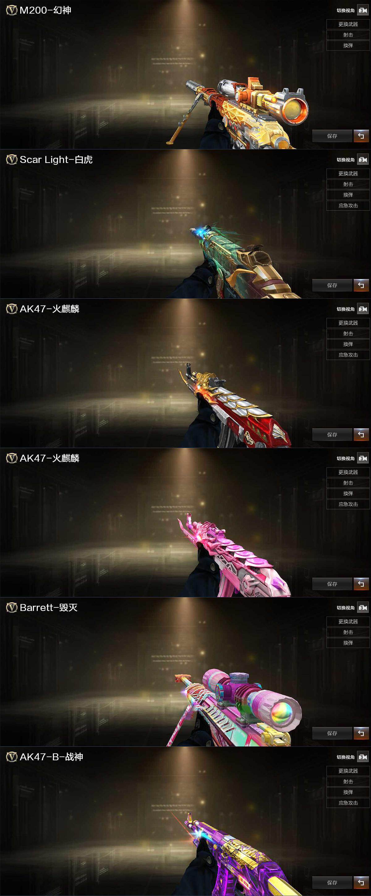 【热门武器】:QBZ03-金色蔷薇,M200-竞技荣光,柯尔特-冠军之特,M4A1-黑骑士,加特林-炼狱,USP-雷暴
