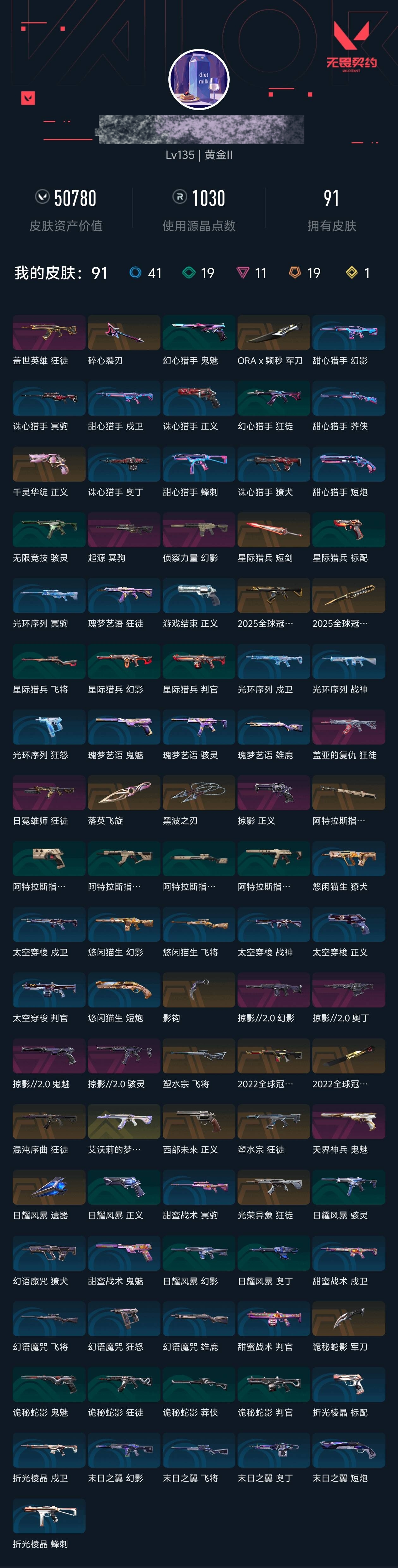 MWW472【22冠军套 25冠军套 掠影2.0套装 侦察幻影 盖亚狂徒 艾沃莉狂徒 千灵正义 起源冥驹 颗秒军刀 落英飞旋 黑波之刃 影钩】【游戏等级】Lv135 【段位】 黄金II 【R点】1,030 【皮肤总价值】50,780 【英雄数量】20 【皮肤数量】91 【挂饰数量】77 【卡面数量】94 【喷漆数量】101 【狂徒】狂徒-盖世英雄 狂徒-幻心猎手 狂徒-瑰梦艺语 狂徒-2025全球冠军赛 狂徒-盖亚的复仇 狂徒-日冕雄师 狂徒-阿特拉斯指挥部 狂徒-混沌序曲 狂徒-艾沃莉的梦之