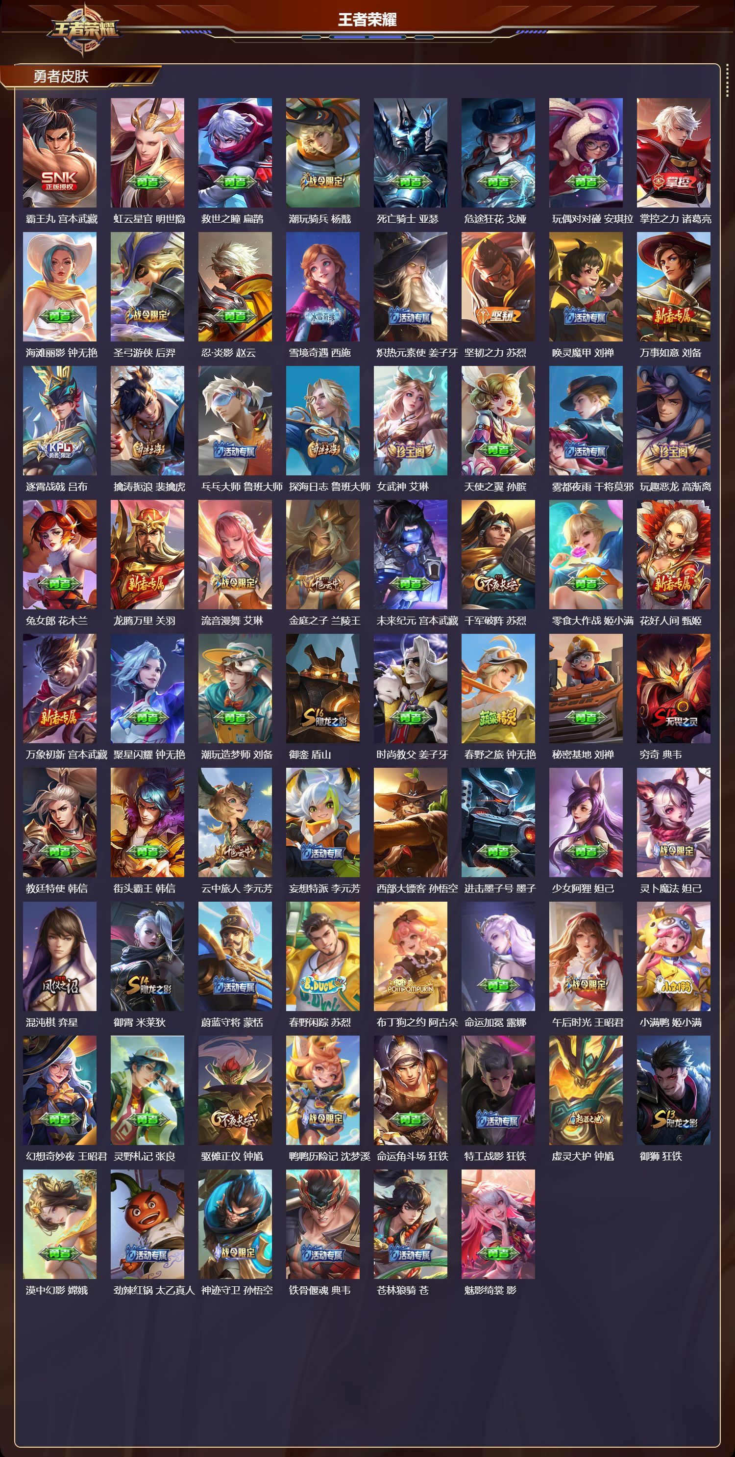 安卓QQ/尊贵铂金/272皮肤/123英雄/1典藏/0珍品无双/1无双/5珍品传说/12传说/74史
