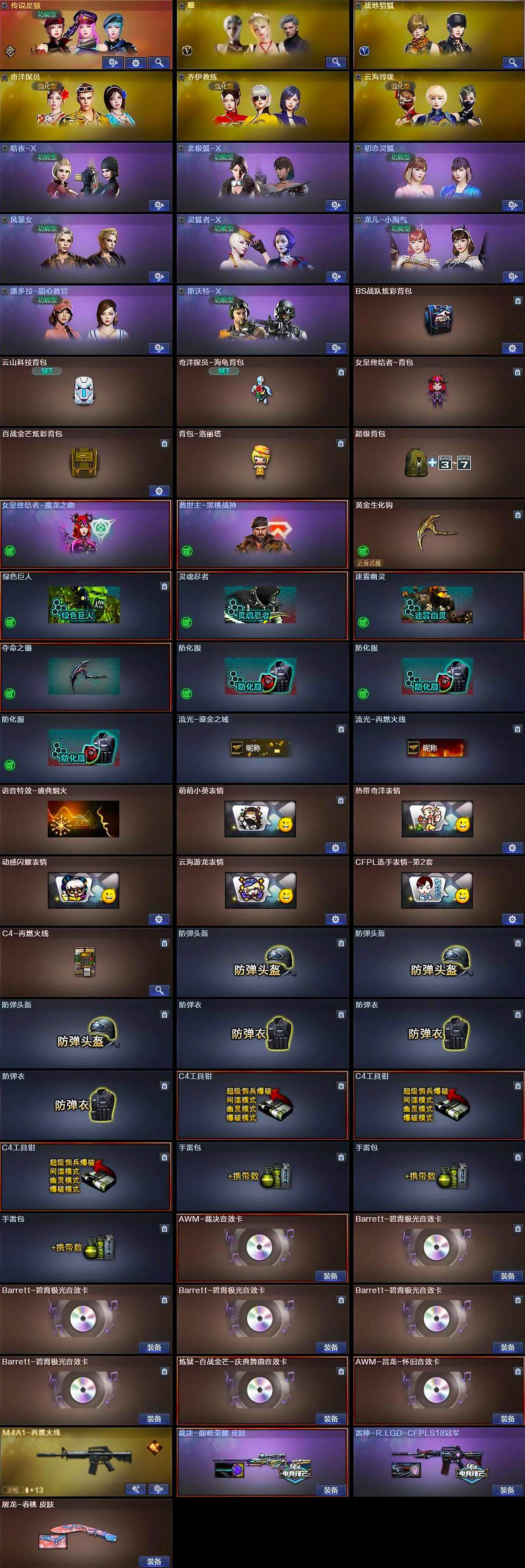 【音效卡】:AWM-裁决音效卡,Barrett-碧霄极光音效卡*5,炼狱-百战金芒-庆典舞曲音效卡,AWM-昌龙-怀旧音效卡