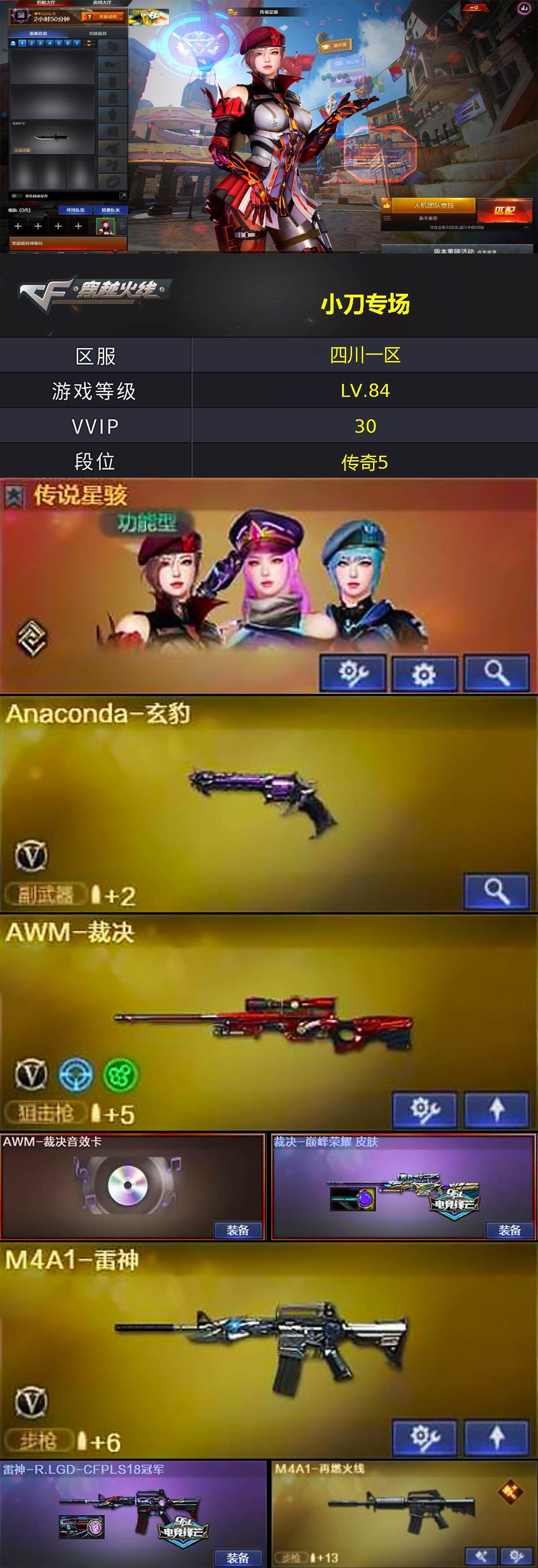 四川一区-29V-0王者-0炫金【传说角色】:传说星骇【热门武器】:M4A
