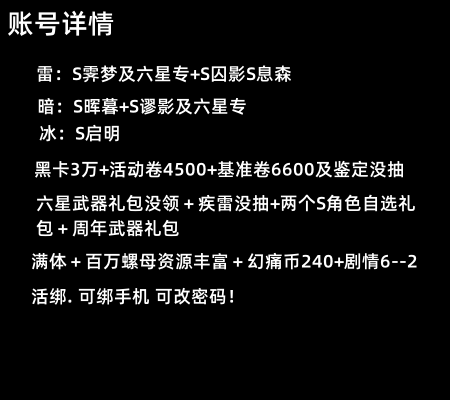 详情请看图片,最后一张有详情描述,新手账号,幻神无练度,介意勿拍