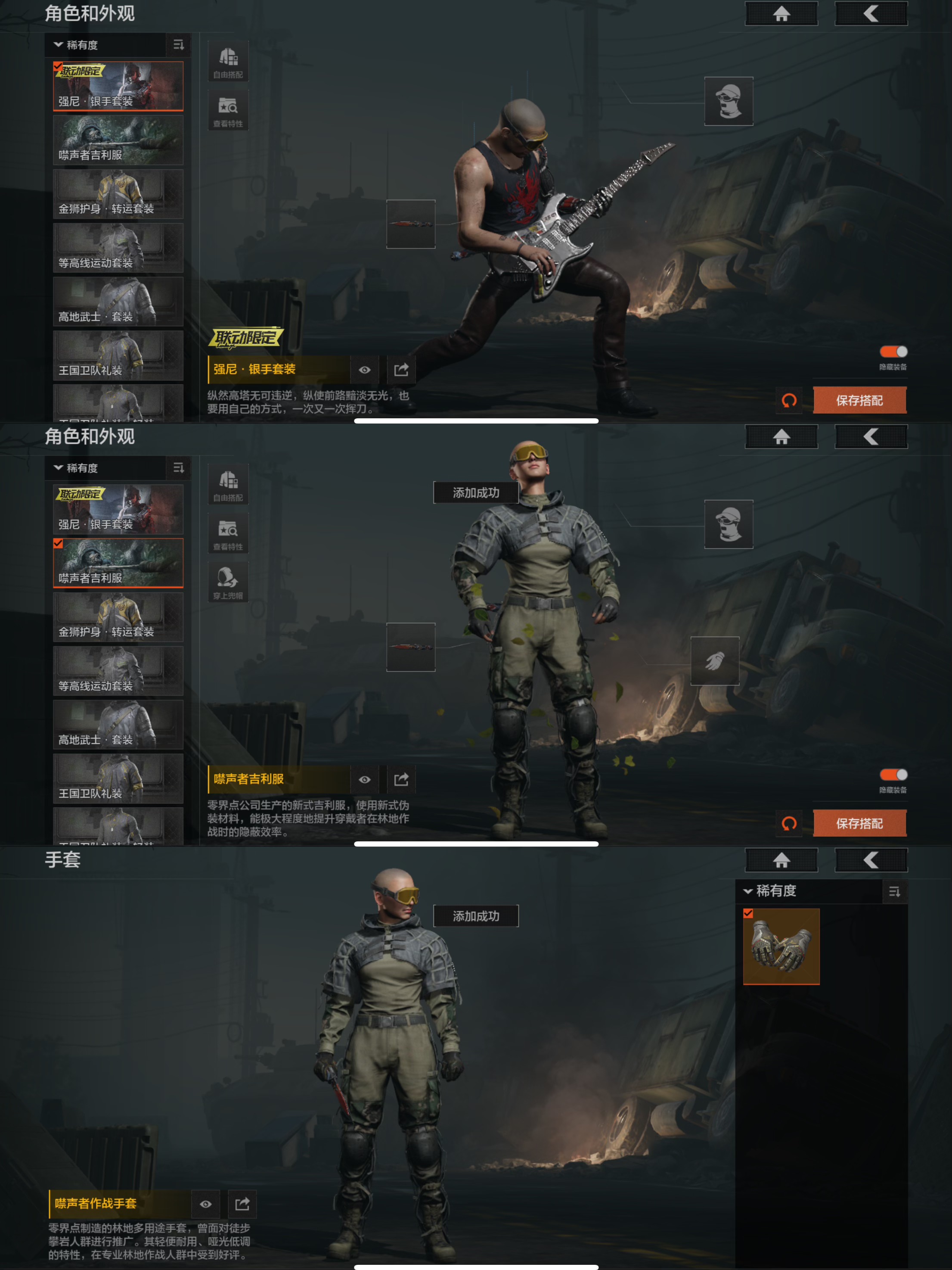 MWT3993【6金枪 4刀皮 2金衣 1手套 暗区传说】苹果Q-等级30-仓库价值393.7k-科恩币45k-【套装】 强尼.银手套装 噤声者吉利服 金狮护身·转运套装 等高线运动套装 高地武士·套装 王国卫队礼装 【手套】 噤声者作战手套 【近战武器】 空腔战术 裁决手杖剑 工兵铲 开山刀