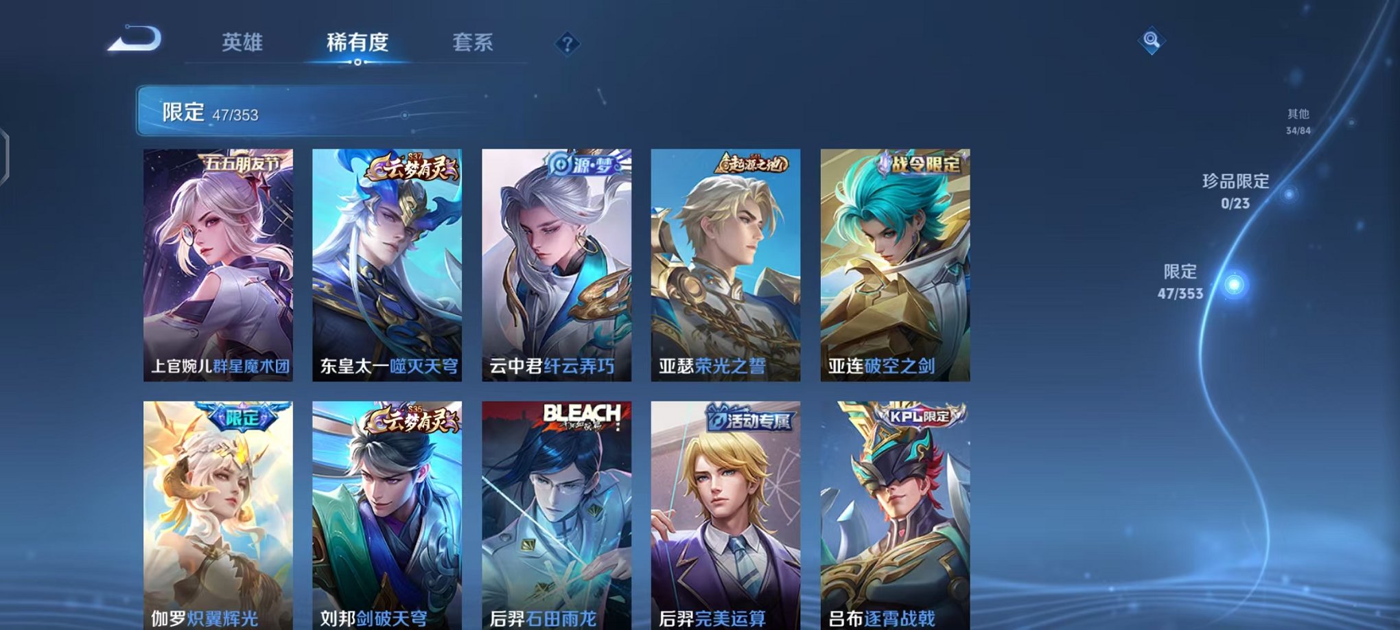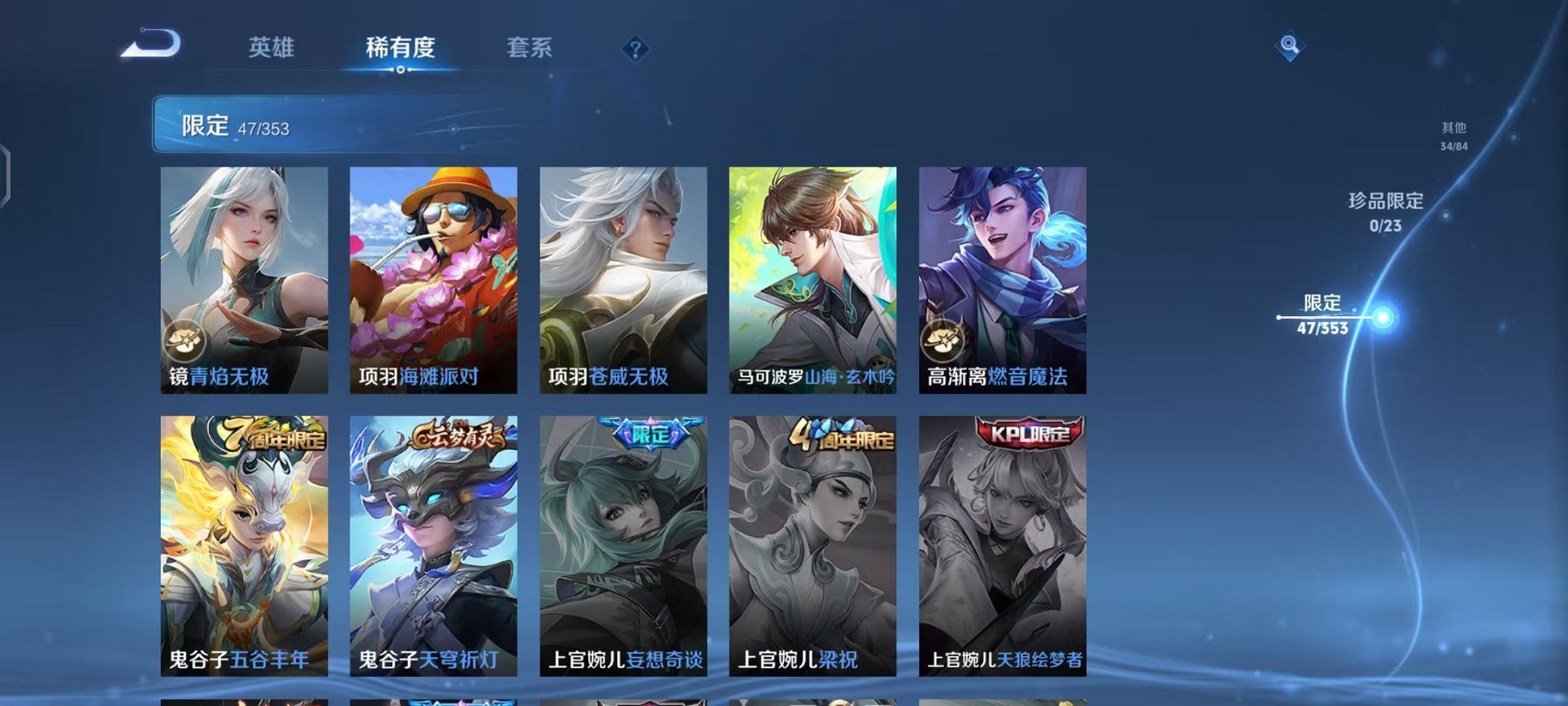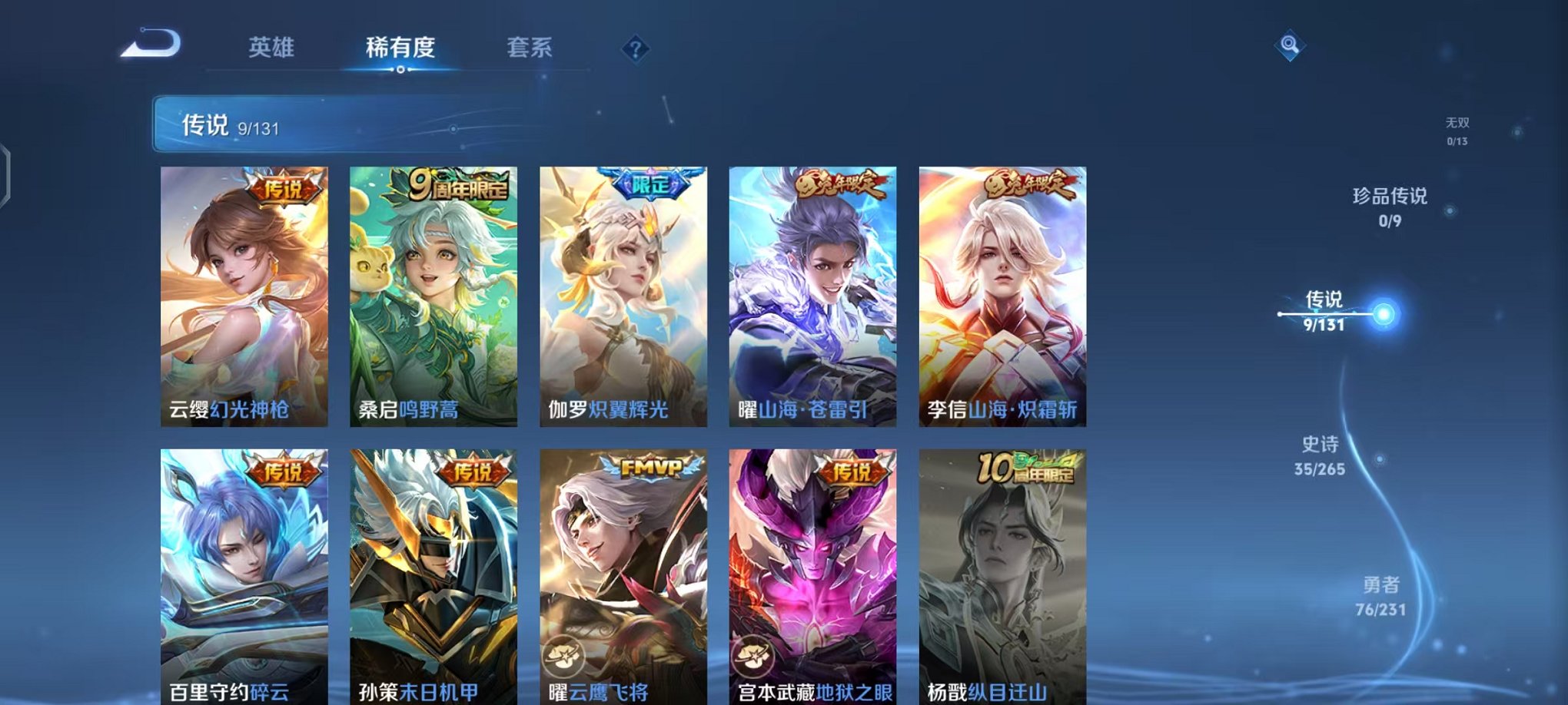 皮肤154 英雄121 永恒钻石 传说9 其他皮肤44-