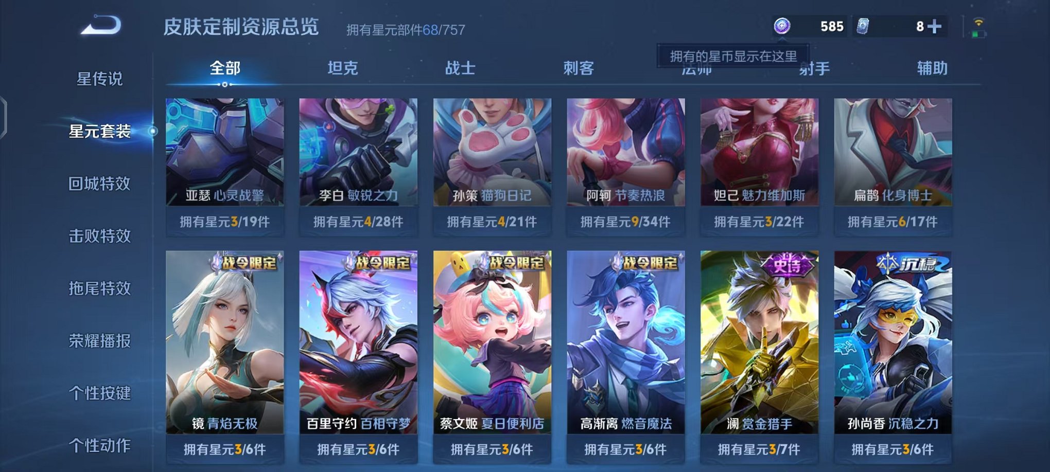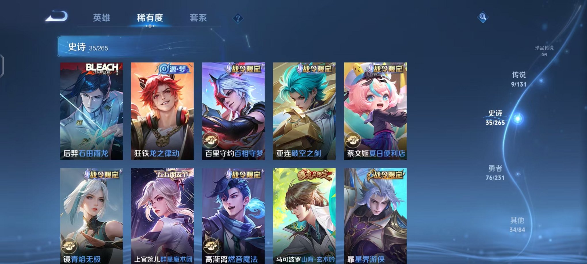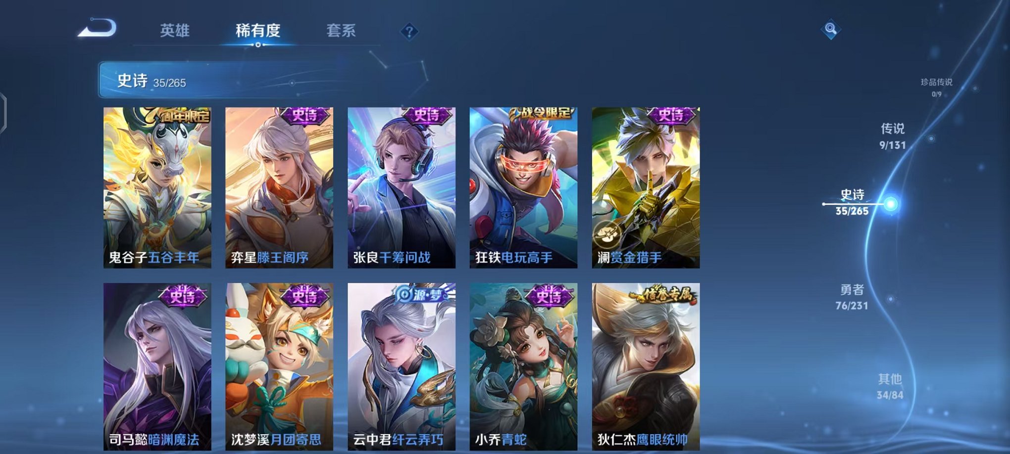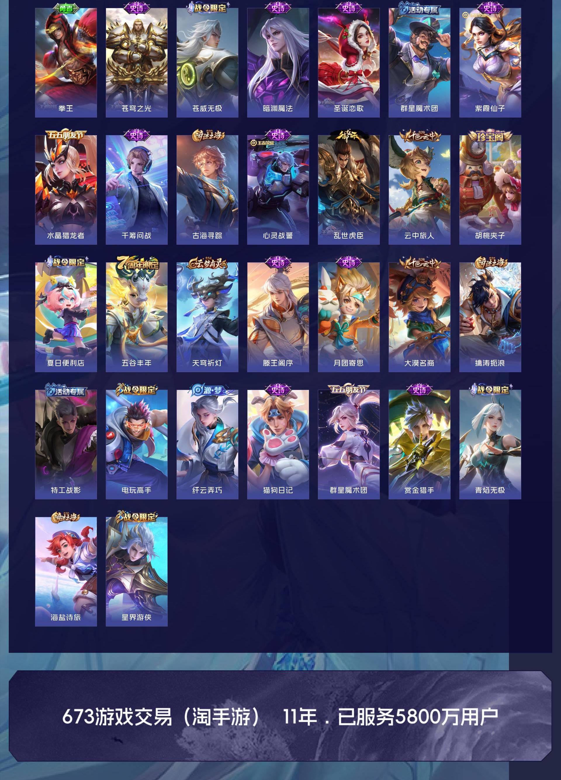 皮肤154 英雄121 永恒钻石 传说9 其他皮肤44-