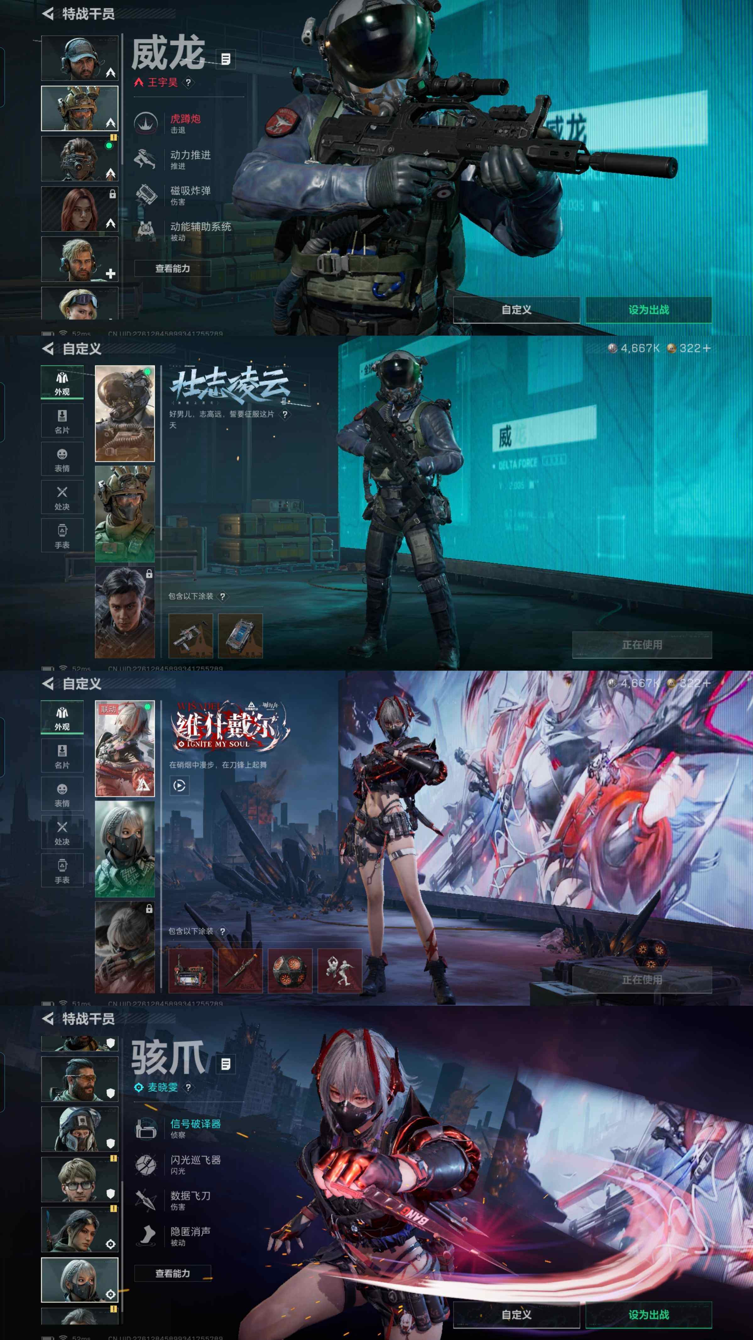 y44,皮肤骇爪红皮壮志凌云,三端互通60级,训练6级仓库7级,总资产49.2M,8橙皮枪,哈夫币4667K,特勤快满,2金挂饰,骇爪-维什戴尔,威龙-壮志凌云