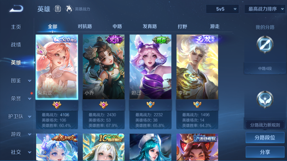 精品小号!李白无双/心动朵莉亚/乘龙安琪拉皮肤数量21印记总