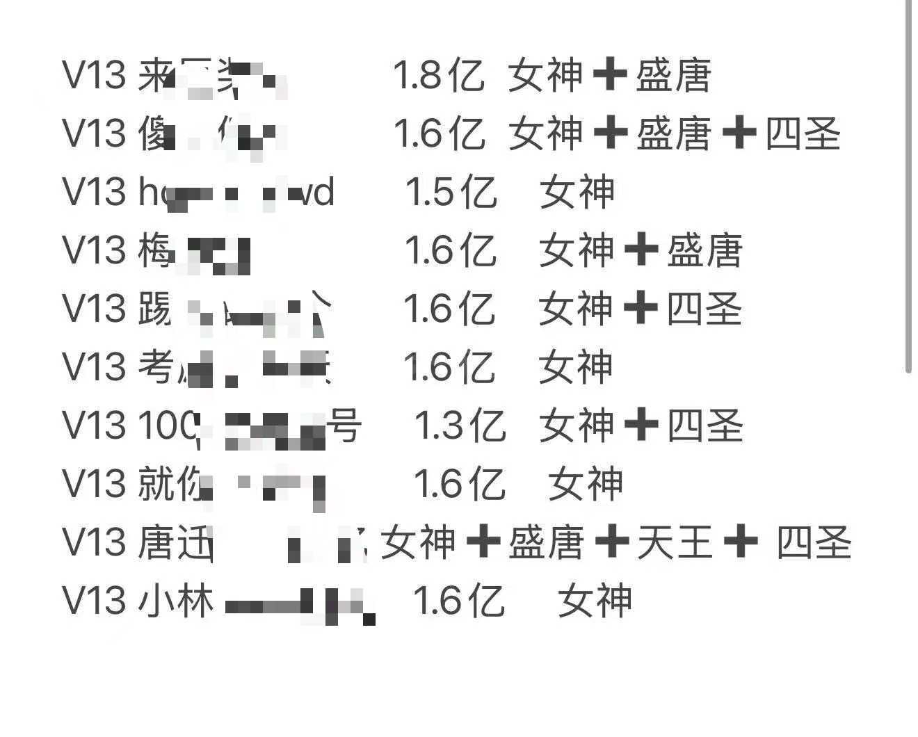 打包出10个V13文字,女神,盛唐,天王,四圣的都有,直接看图