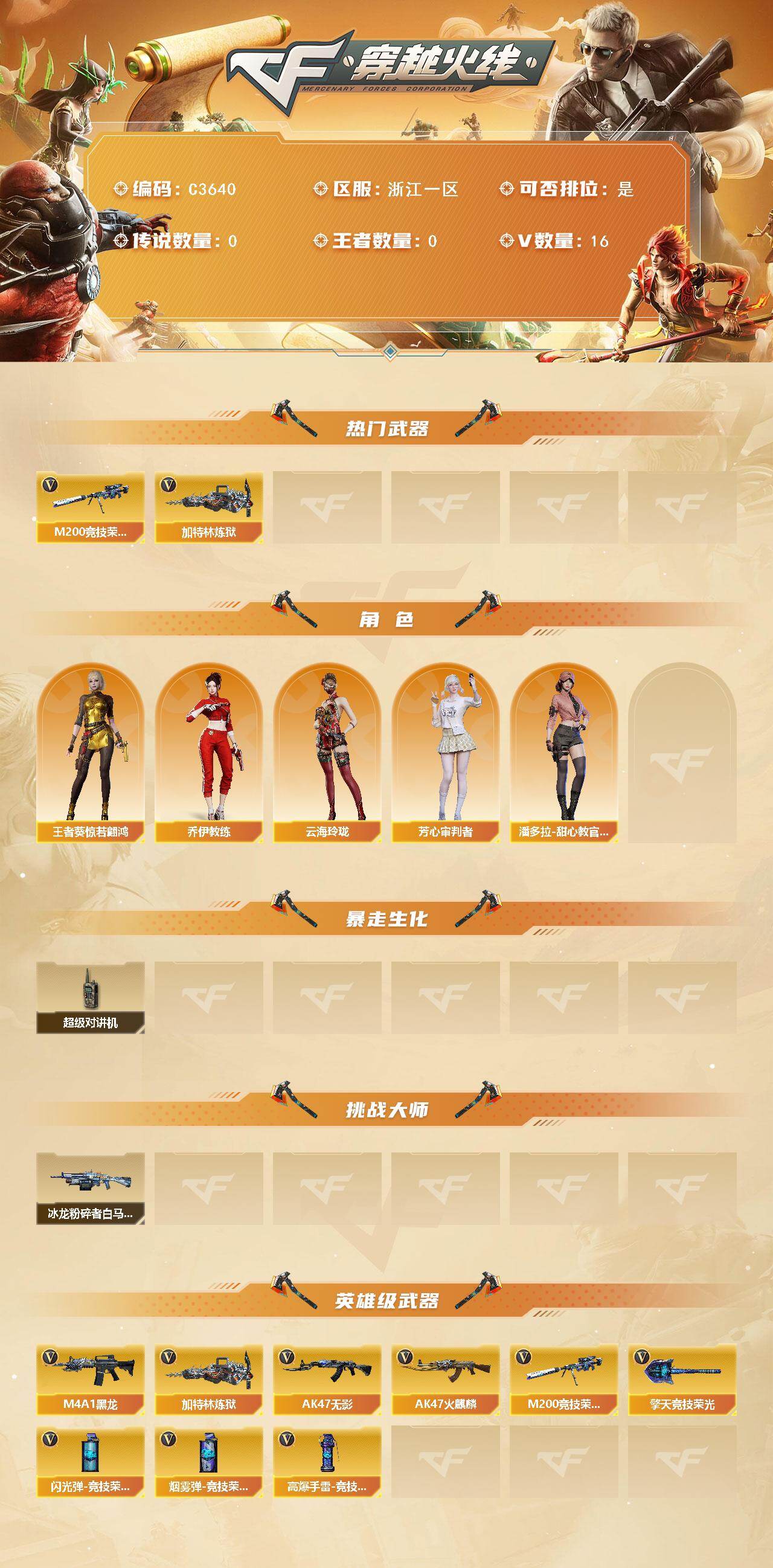 【C3640】浙江一区-16V-0王者-0炫金