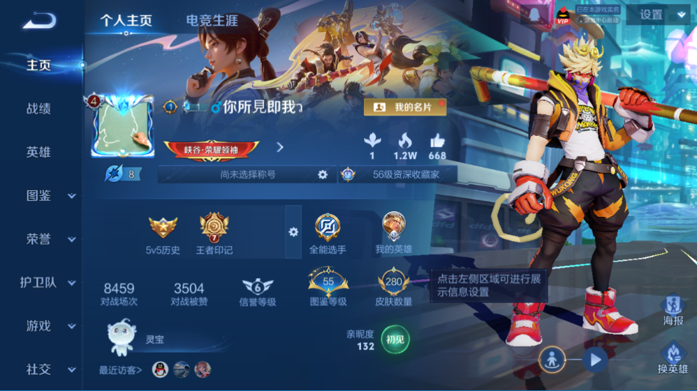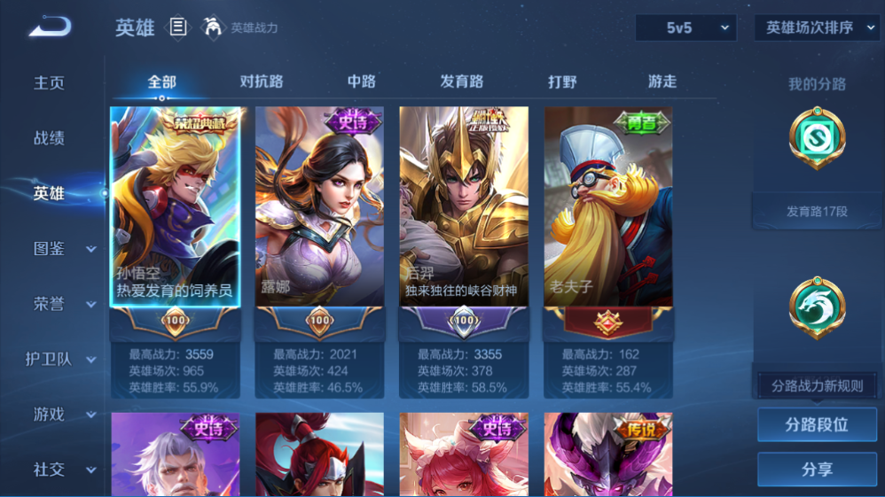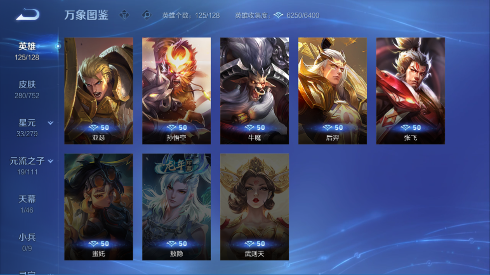 猴子典藏/淬星赵云/神魔李信皮肤数量280印记总数7V8永恒