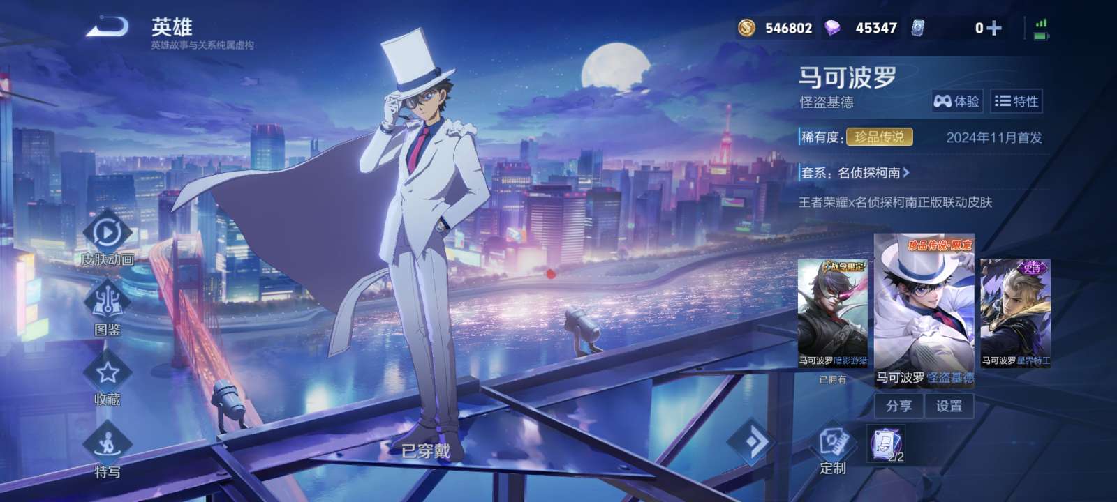 贵8号,甄姬无双,怪盗基德,江户川柯南,1典藏,1无双,4真品传说,皮肤多多。