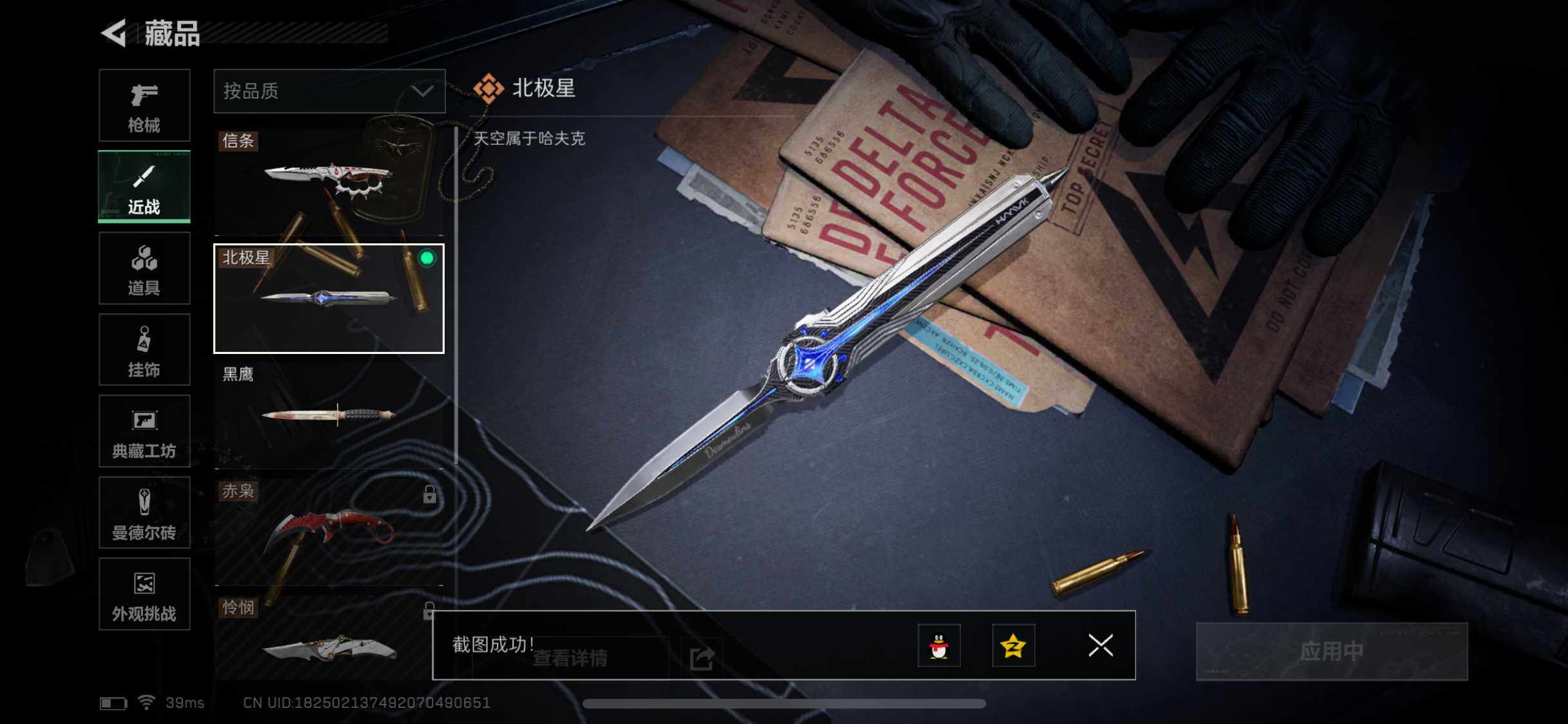 【近战皮肤】:近战-北极星,近战-信条,近战-黑鹰