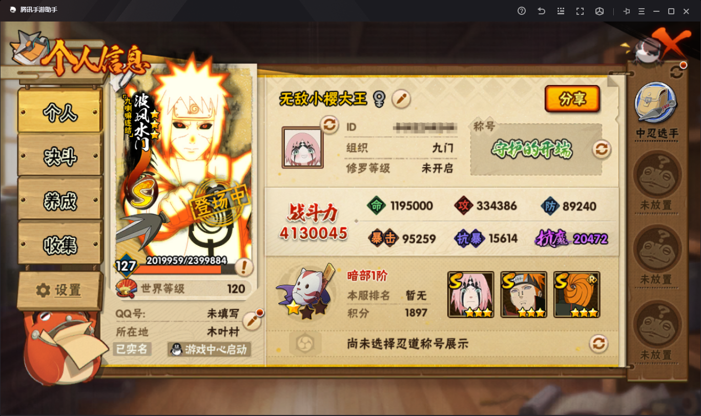 413W五影斑金水8S+1个198直购A/18A战力413忍