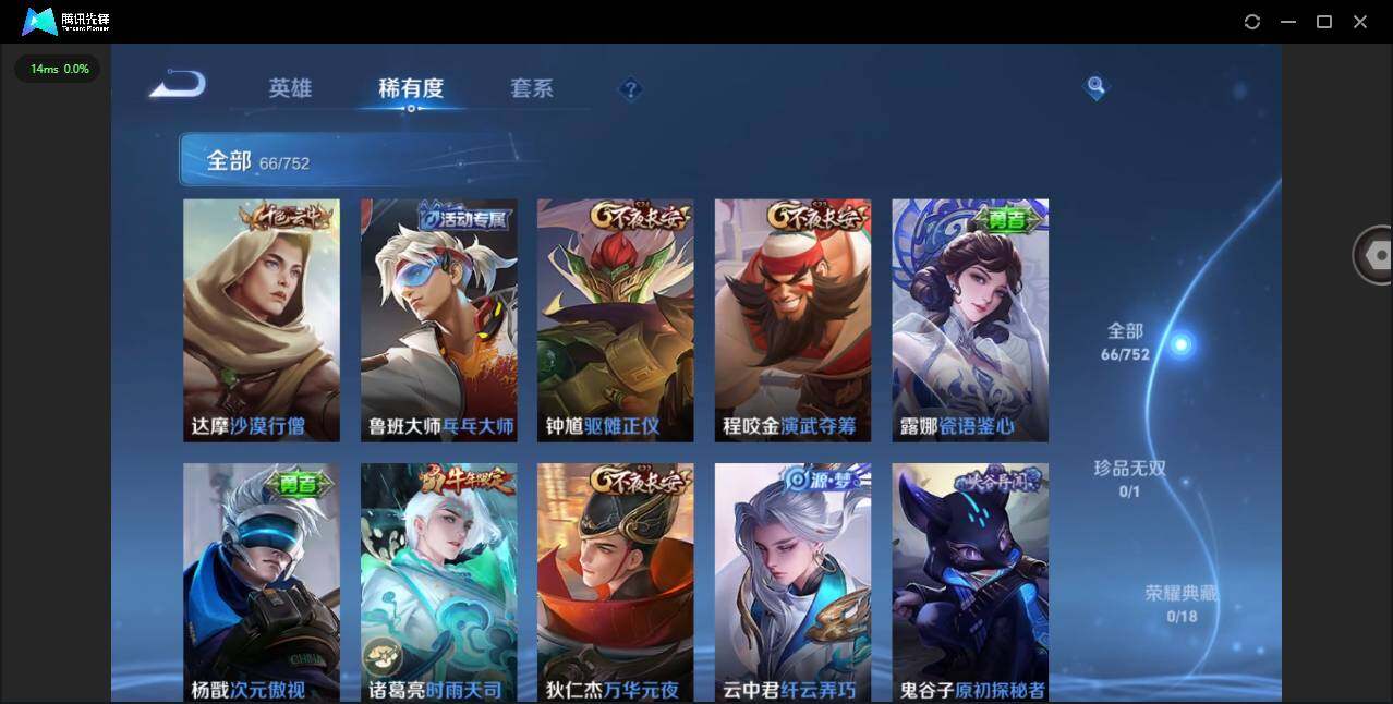 实名: 可修改 贵族等级: V6 英雄数: 101 皮肤数: 66 限定皮: