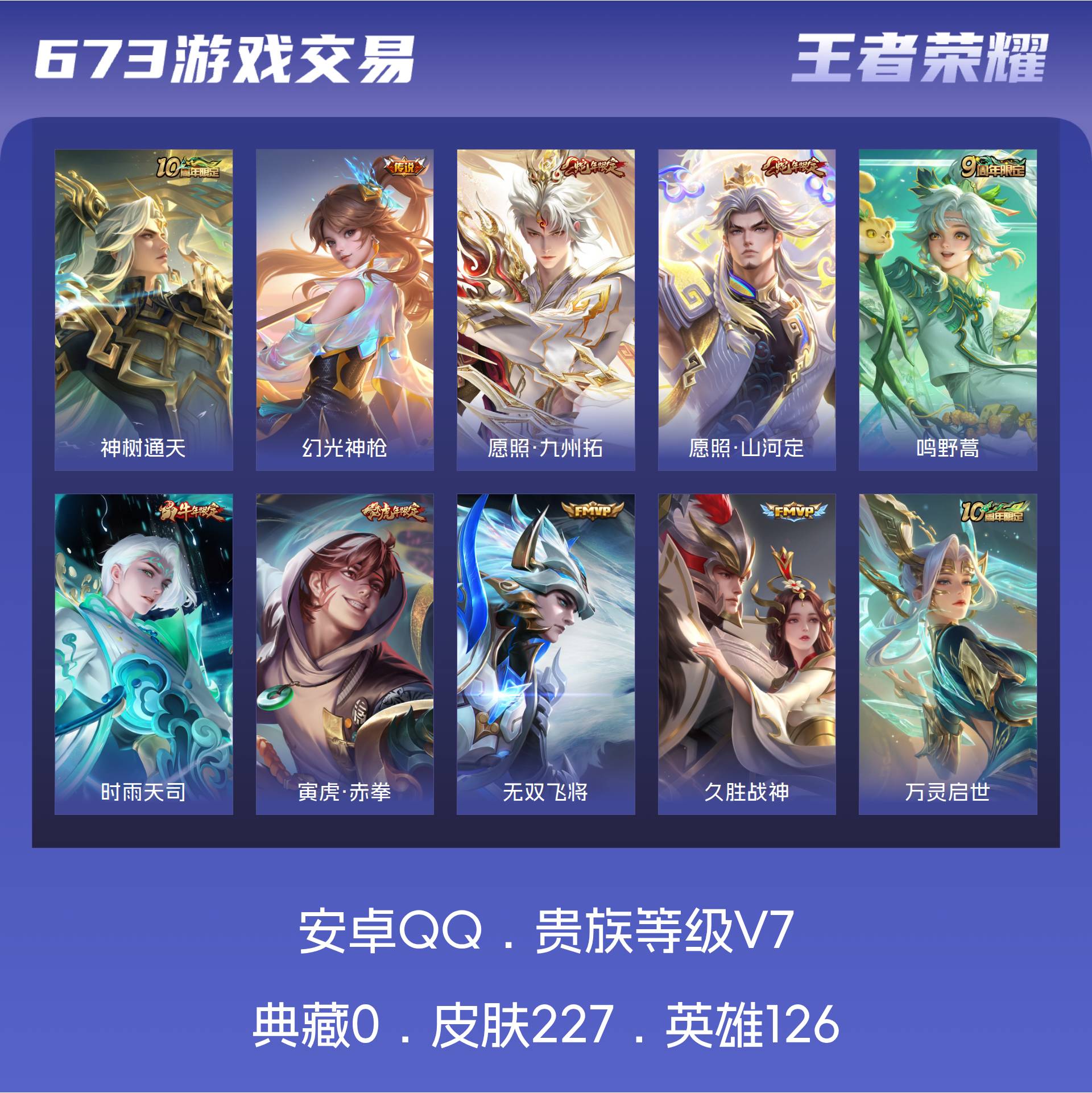皮肤227 英雄126 无双王者 传说9 其他皮肤78-【33】安卓Q-V7-最强王者段位-126英雄-227皮肤-9传说-55史诗