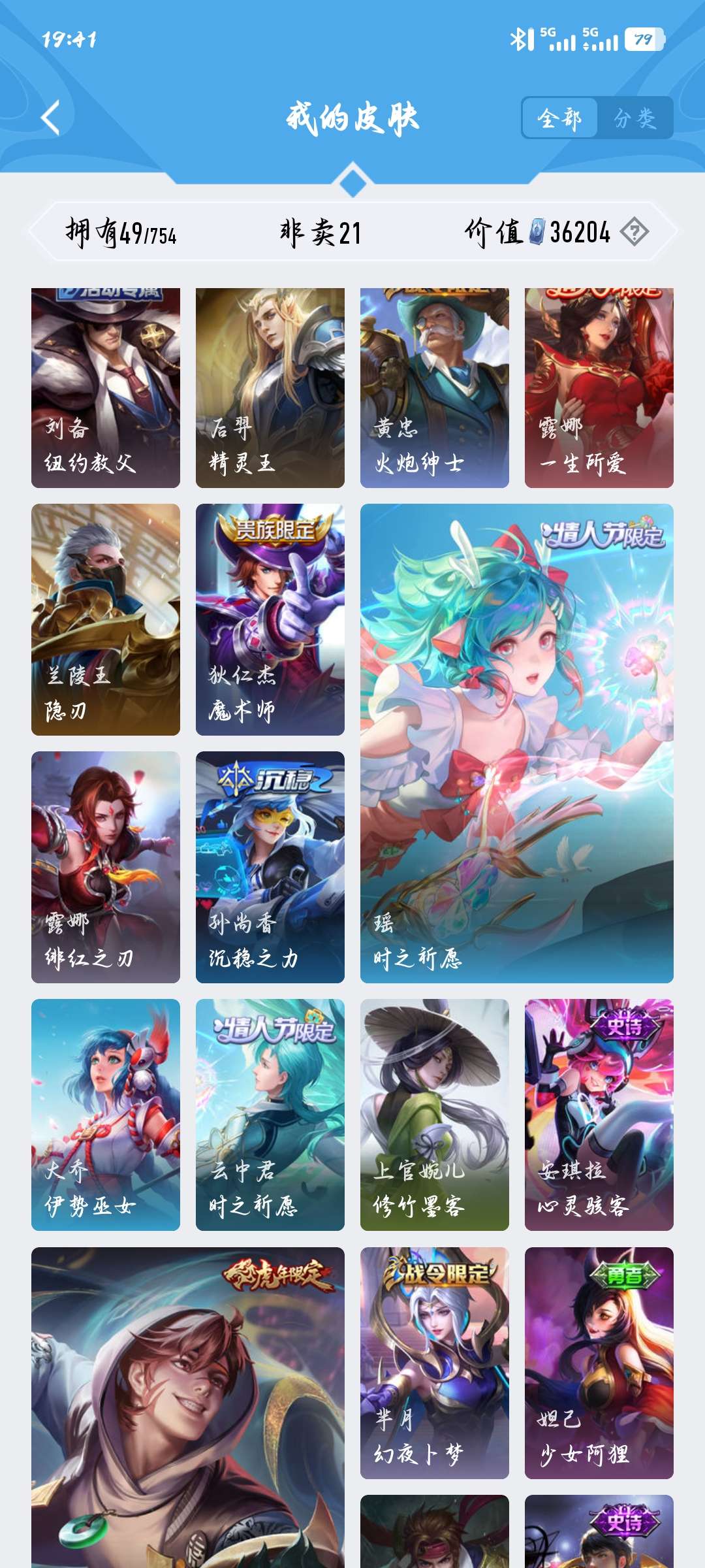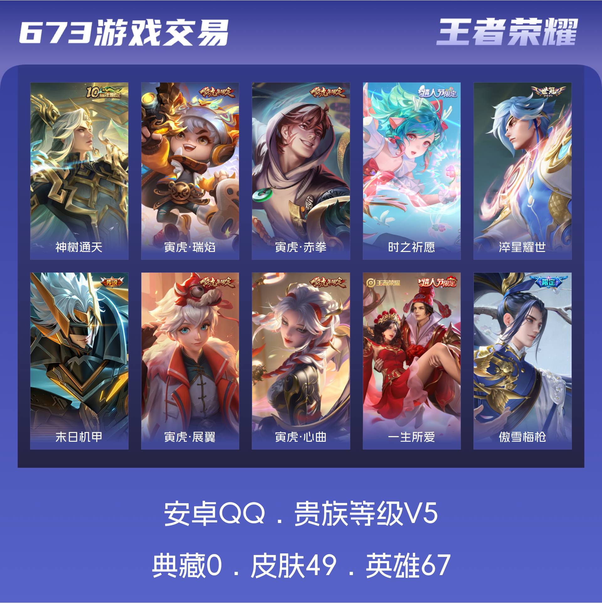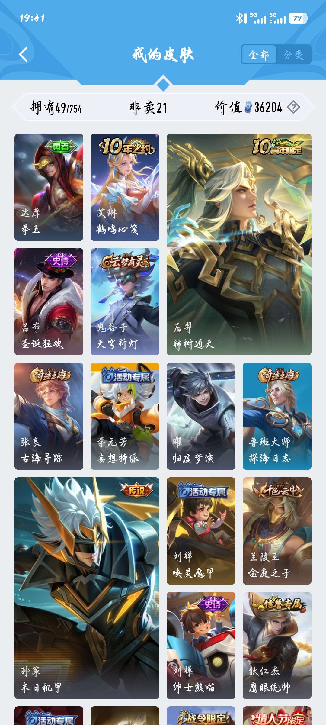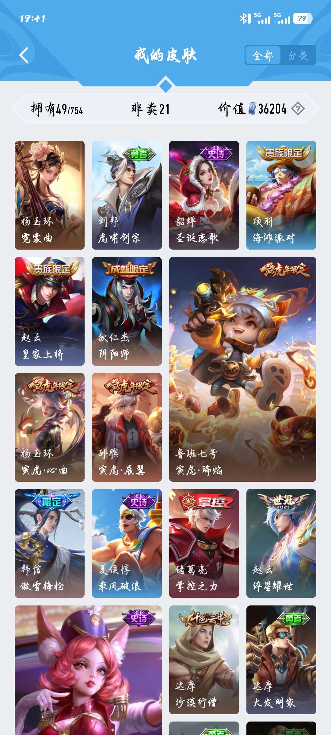 皮肤49 英雄67 荣耀黄金 传说6 其他皮肤22-可以当做小号可讲价皮肤多多