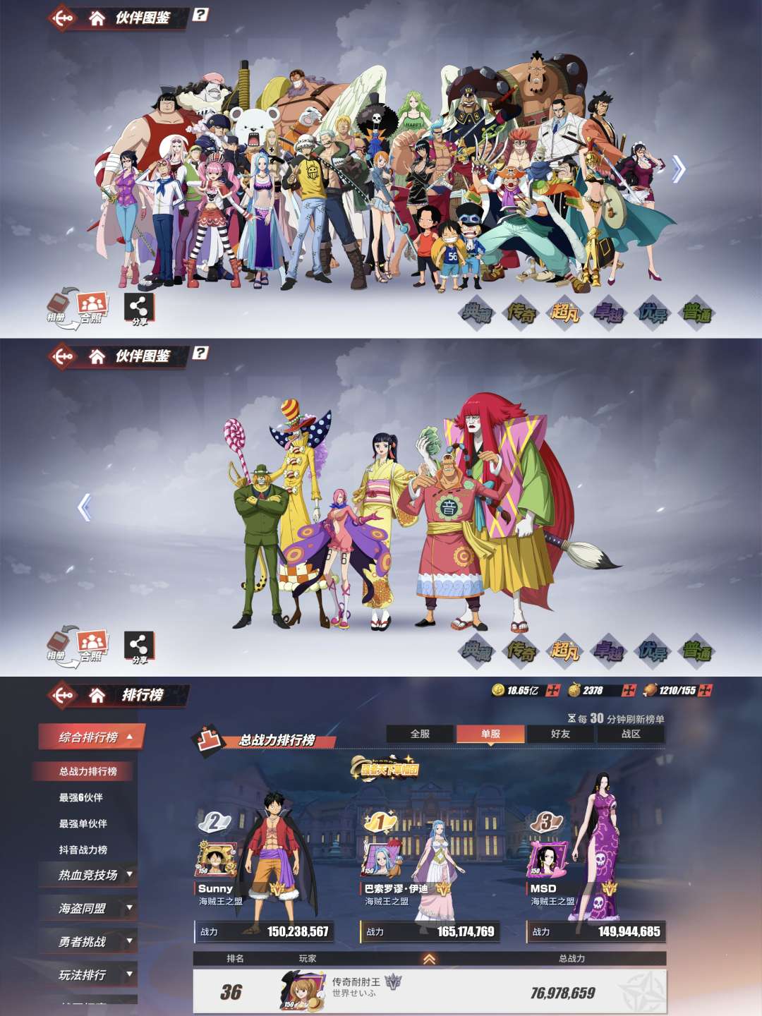 7690万战力。98友情技布林。3神船31艘船。强者萨博83传奇14强者4典藏。2300金果。下个