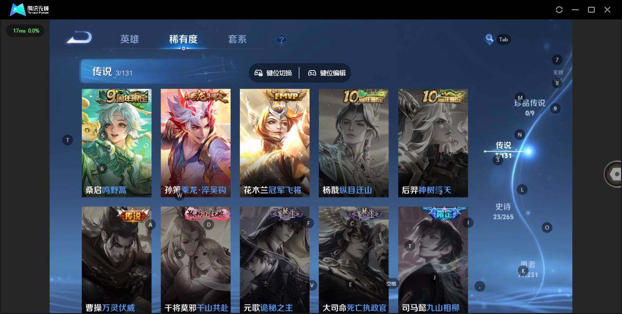 实名: 可修改 贵族等级: V5 英雄数: 126 皮肤数: 139 传说皮: