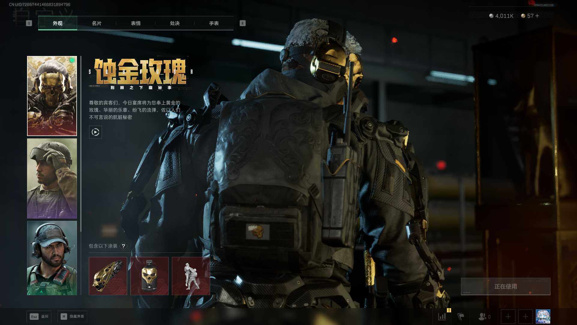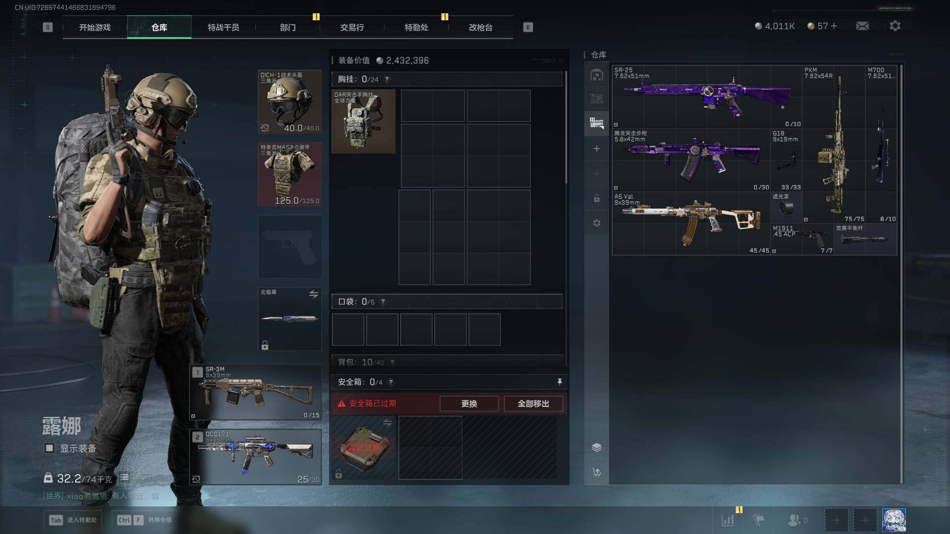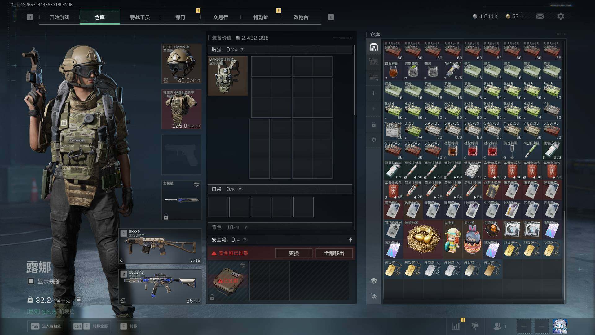 总资产(M):43M/哈夫币(K):4011K/哈夫币(K):4011K/传说枪皮数:29/全面战场
