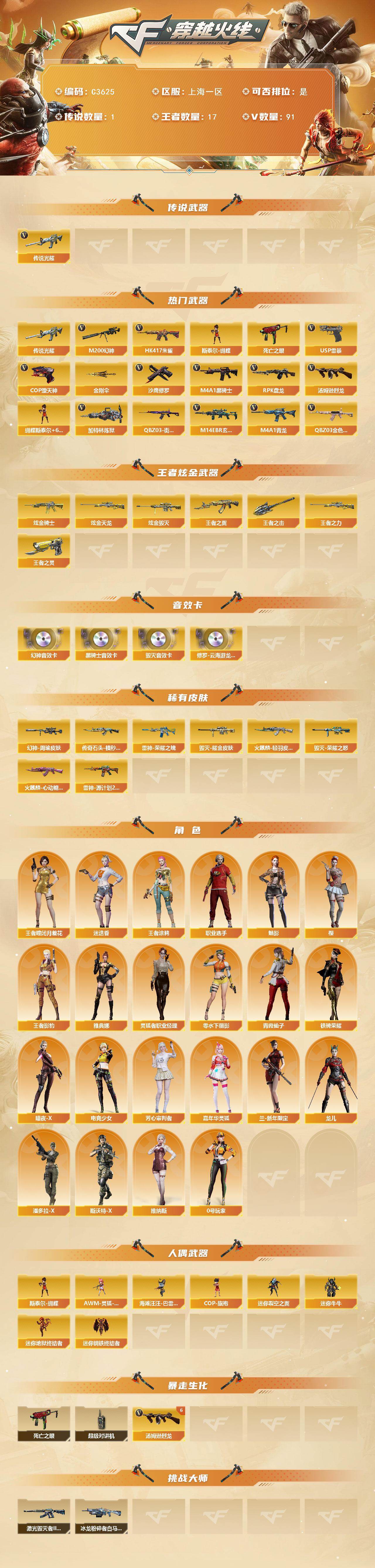 【热门武器】:传说光耀,QBZ03-金色蔷薇,M14EBR-玄武,HK417-朱雀,M4A1-青龙,M200-幻神,死亡之眼,QBZ03-街机,M4A1-黑骑士,汤姆逊-烈龙*6,RPK-盘龙*4,加特林-炼狱*2,斯泰尔-蝴蝶,USP-雷暴,COP-堕天神,沙鹰-修罗*3,金刚伞