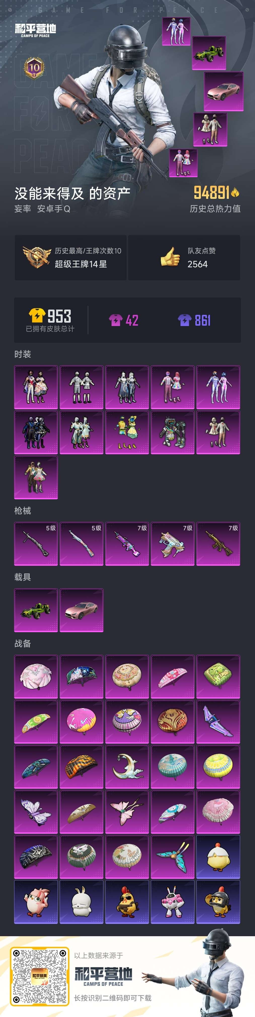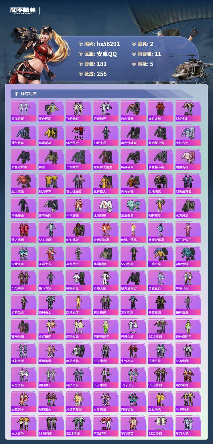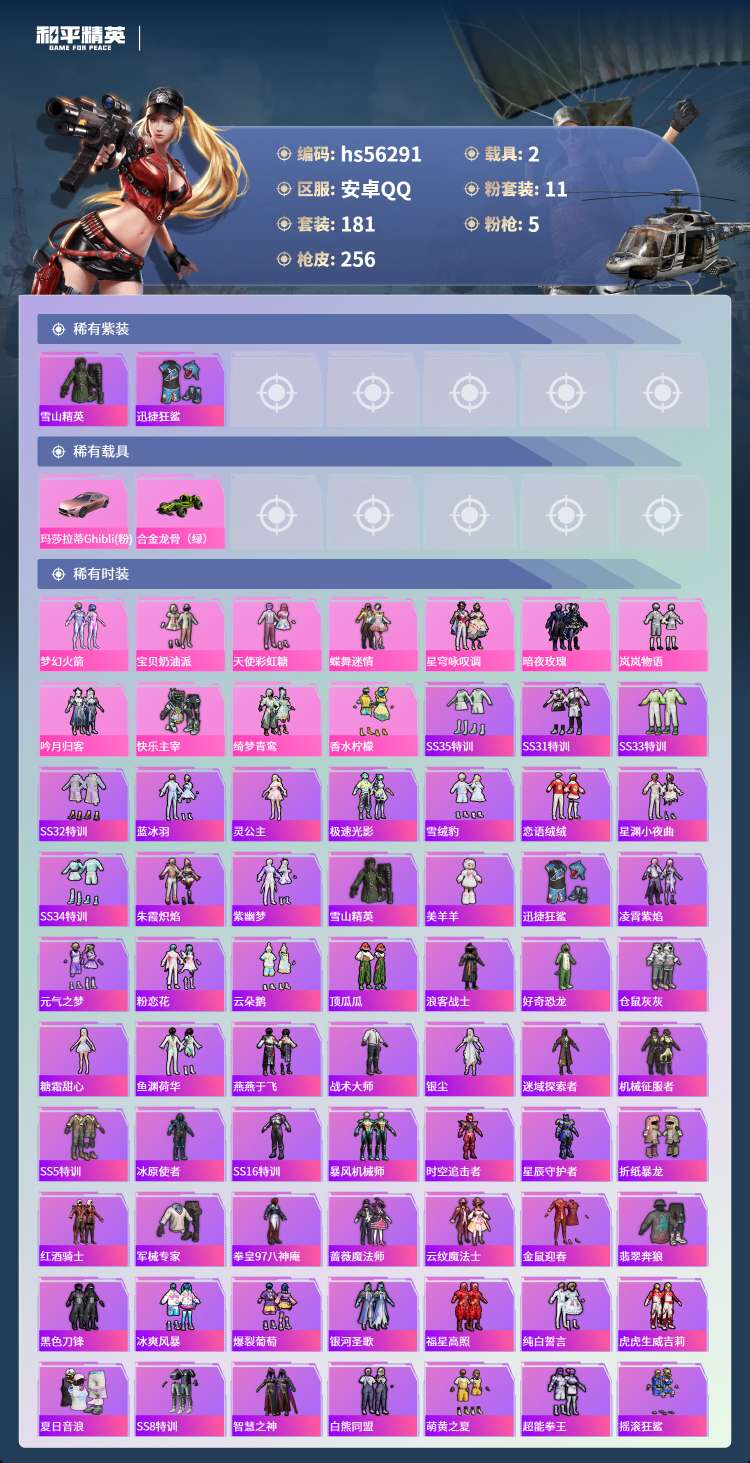 hs56291 安卓手Q-10王牌印记-11粉装-5特效枪-2载具-95032热力值-181套装-2