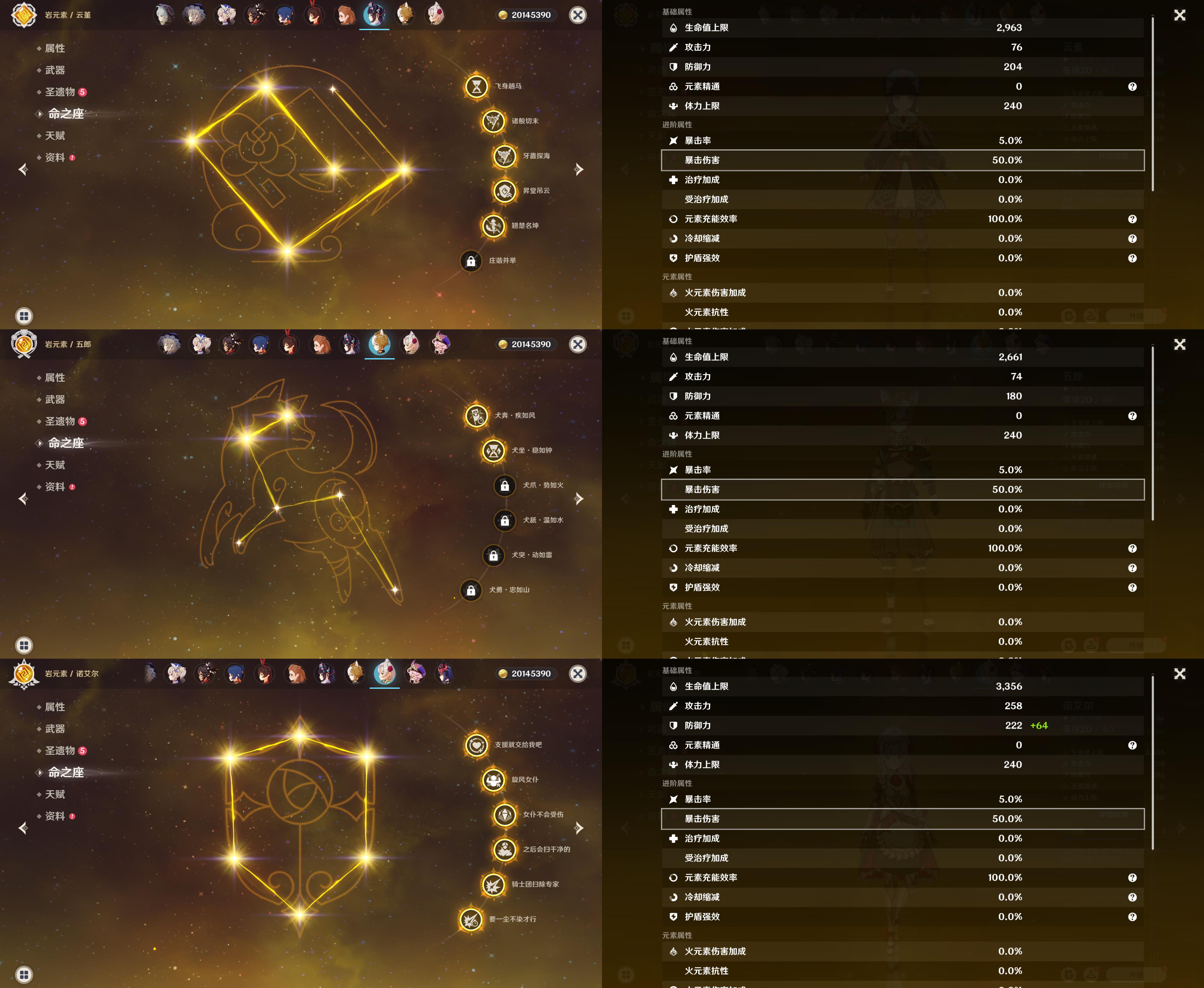 五星角色: