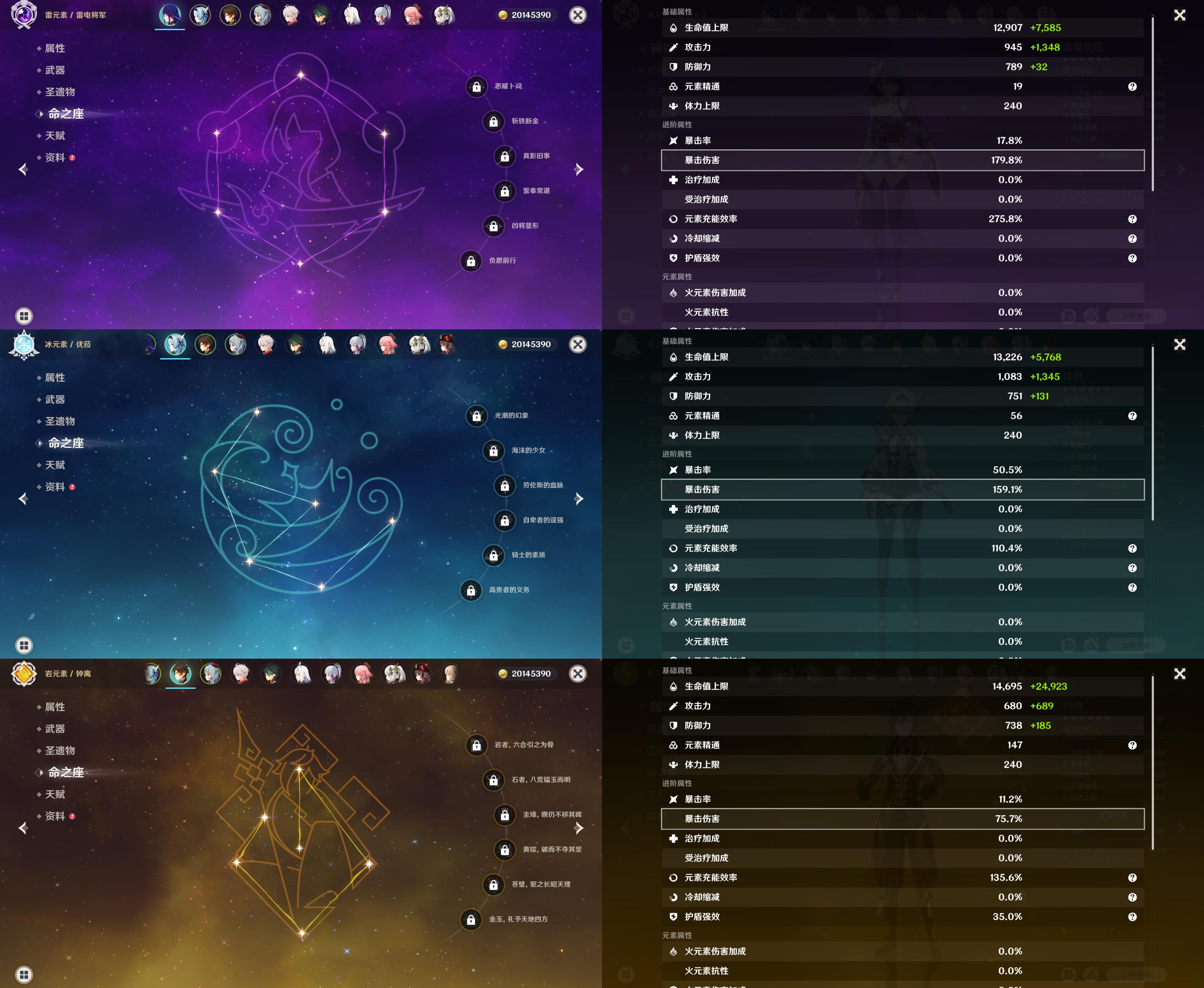 58级/32黄/女主/20个五星角色/10个五星武器/雷电将军/优菈/钟离/甘雨/枫原万叶