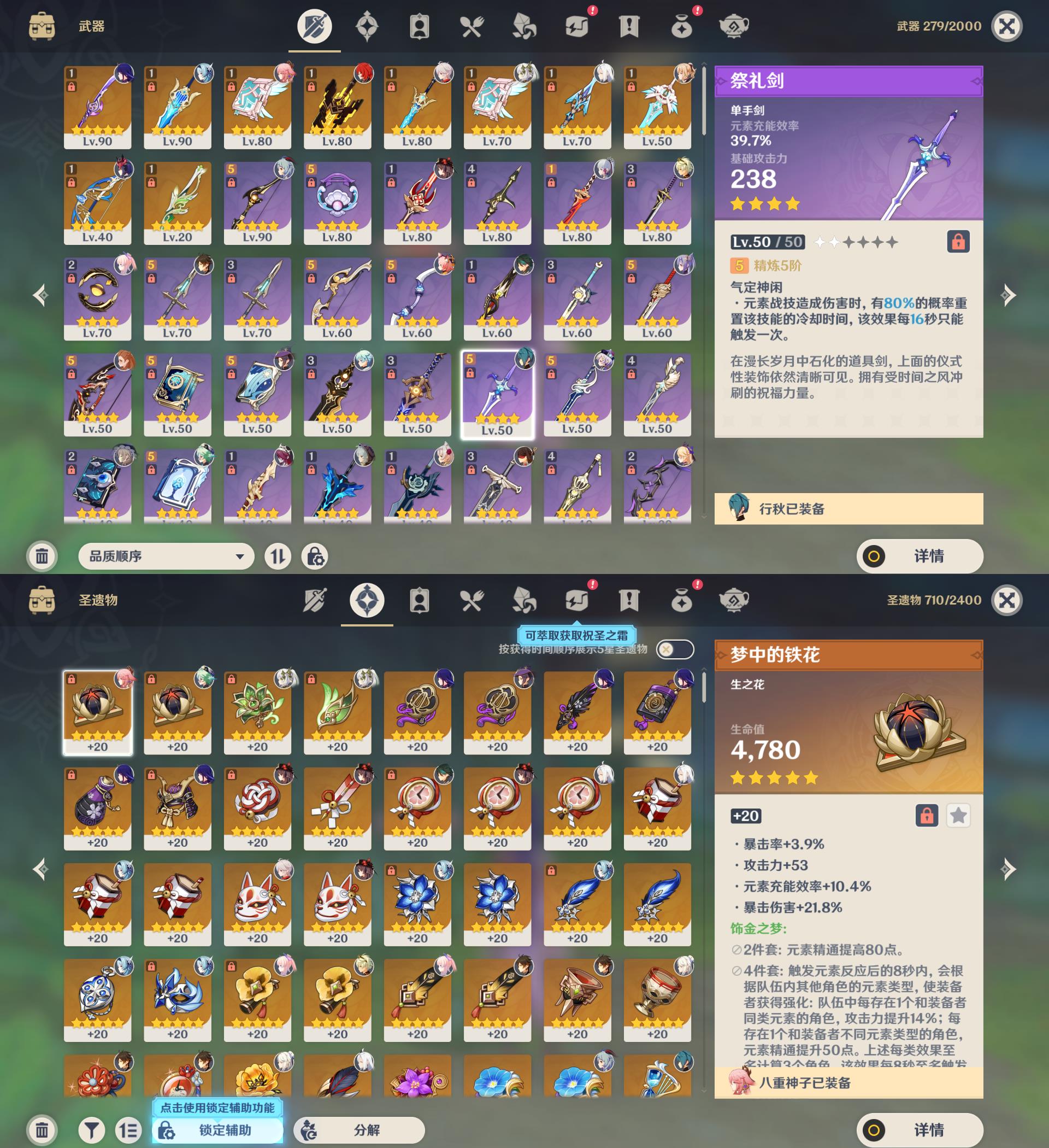 【YSYT426】58级/32黄/女主/20个五星角色/10个五星武器/雷电将军/优菈/钟离/甘雨/枫原万叶/魈/申鹤/1命神里绫华/1命八重神子/纳西妲/胡桃/琴/莫娜/七七/刻晴/珊瑚宫心海/那维莱特/迪希雅/迪卢克/0命埃洛伊/薙草之稻光/松籁响起之时/天空之卷/无工之剑/苍古自由之誓/息灾/天空之刃/终末嗟叹之诗/裁叶萃光