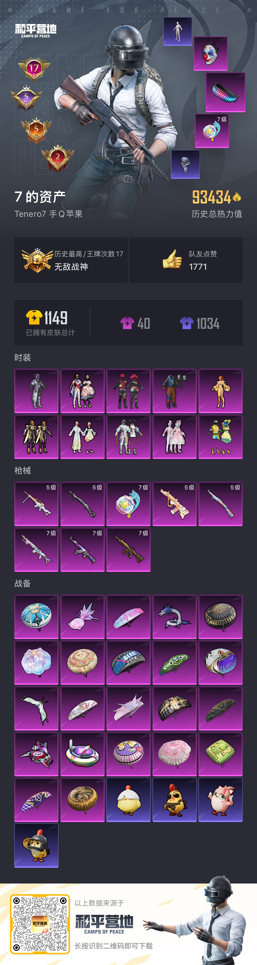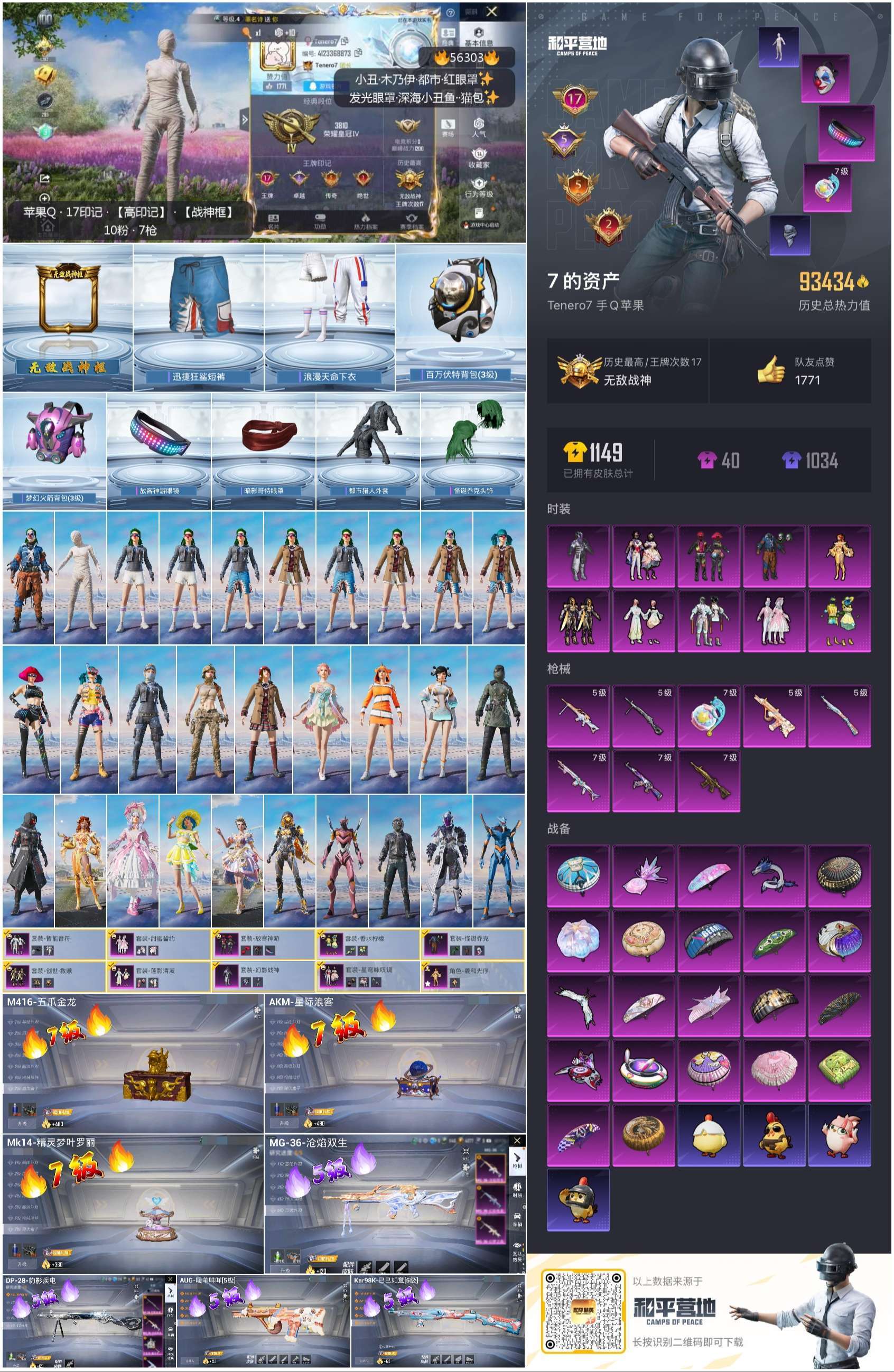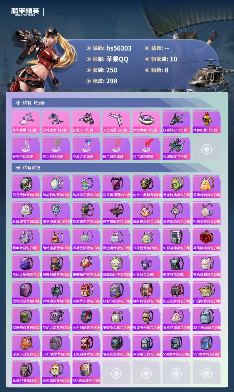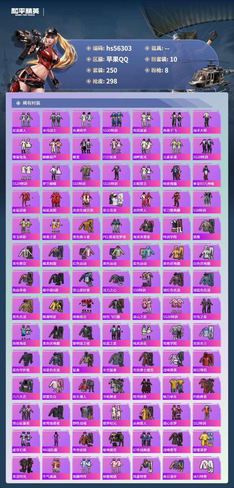 hs56303 苹果手Q-17王牌印记-有战神框-10粉装-8特效枪-93474热力值-250套装-