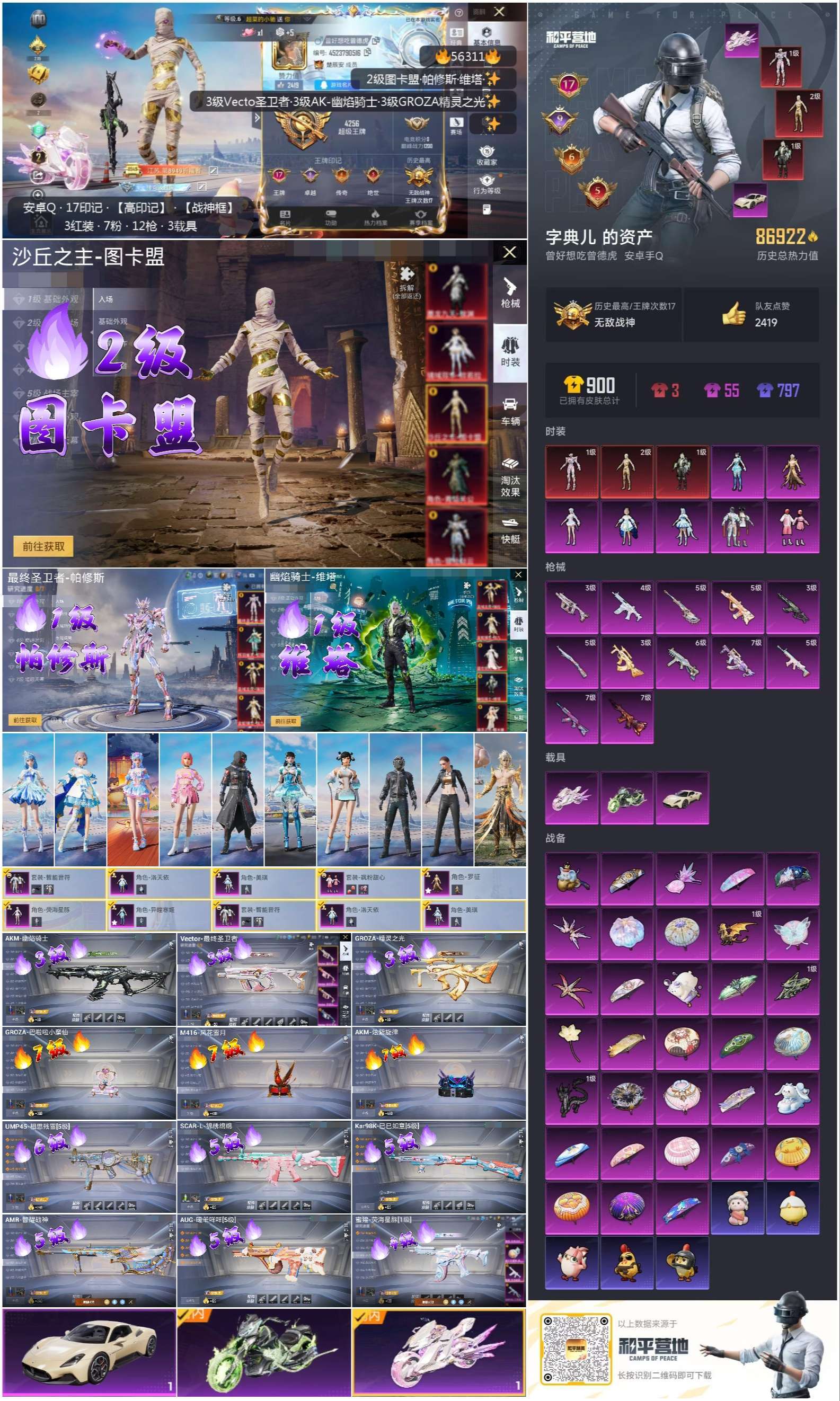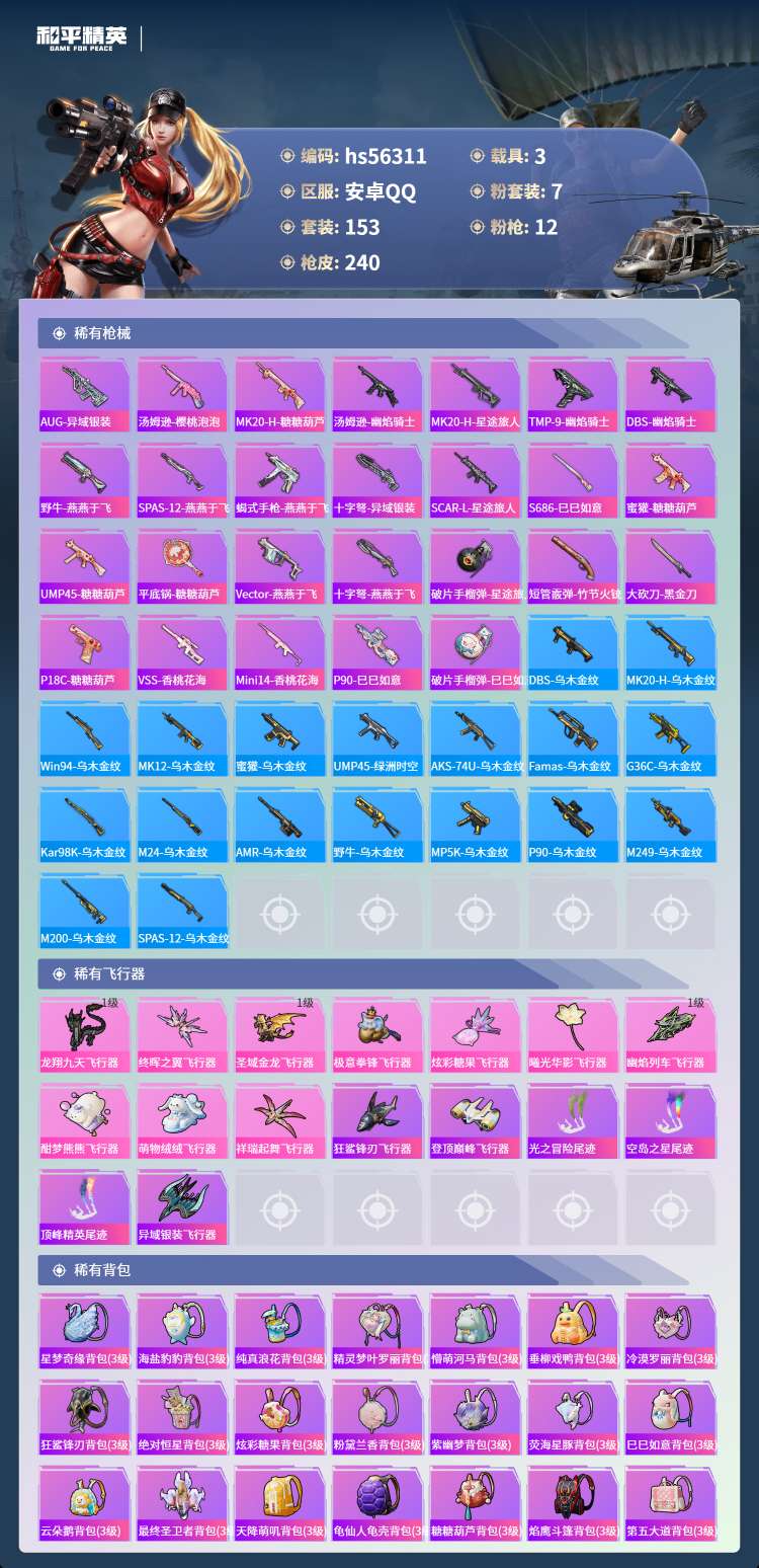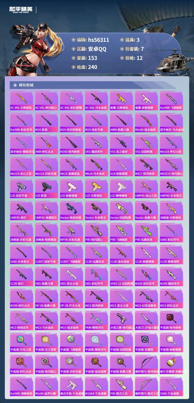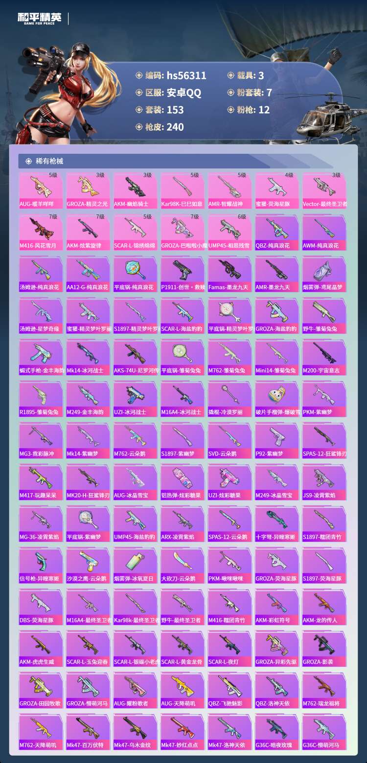 hs56311 安卓手Q-17王牌印记-有战神框-3红装-7粉装-12特效枪-3载具-87012热力