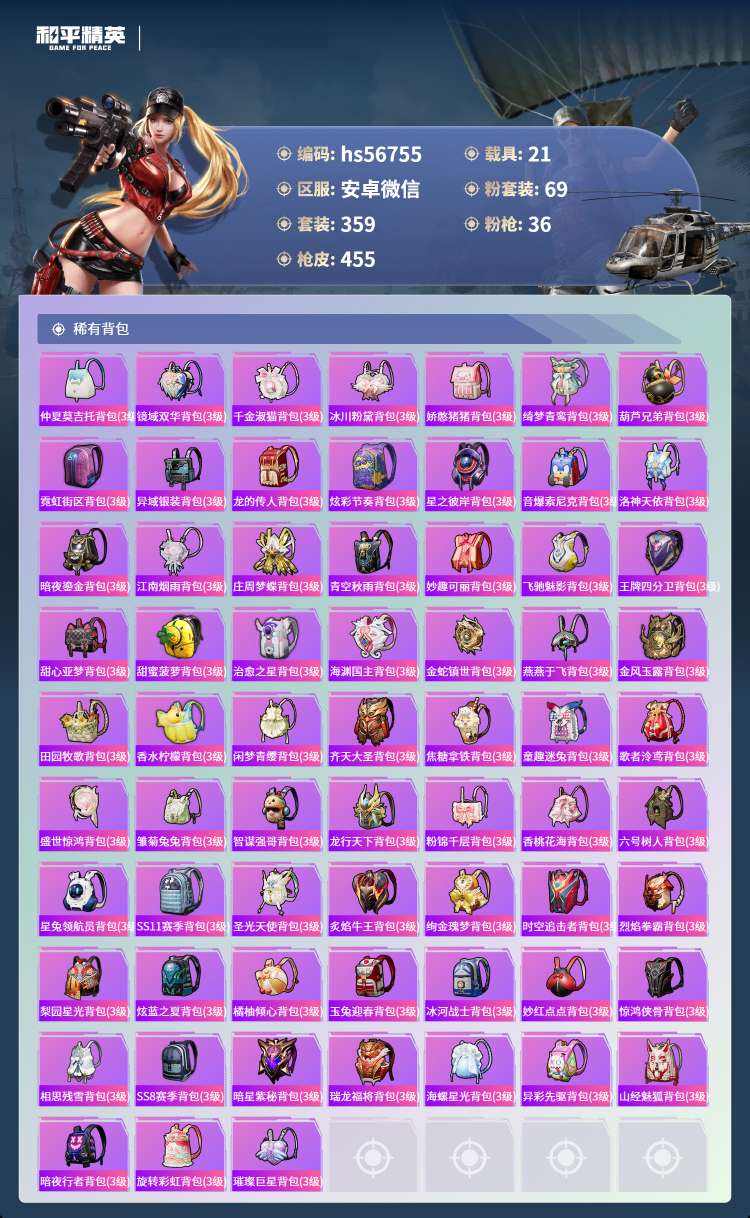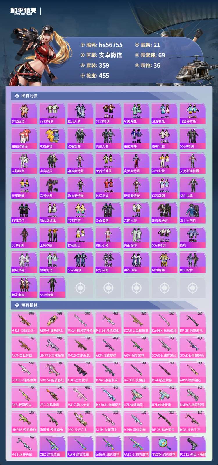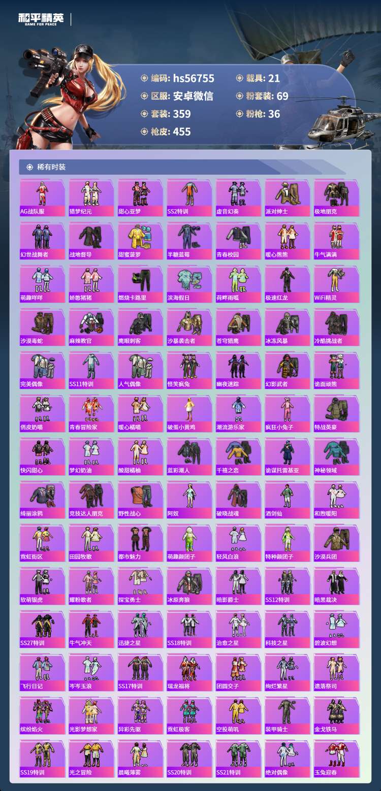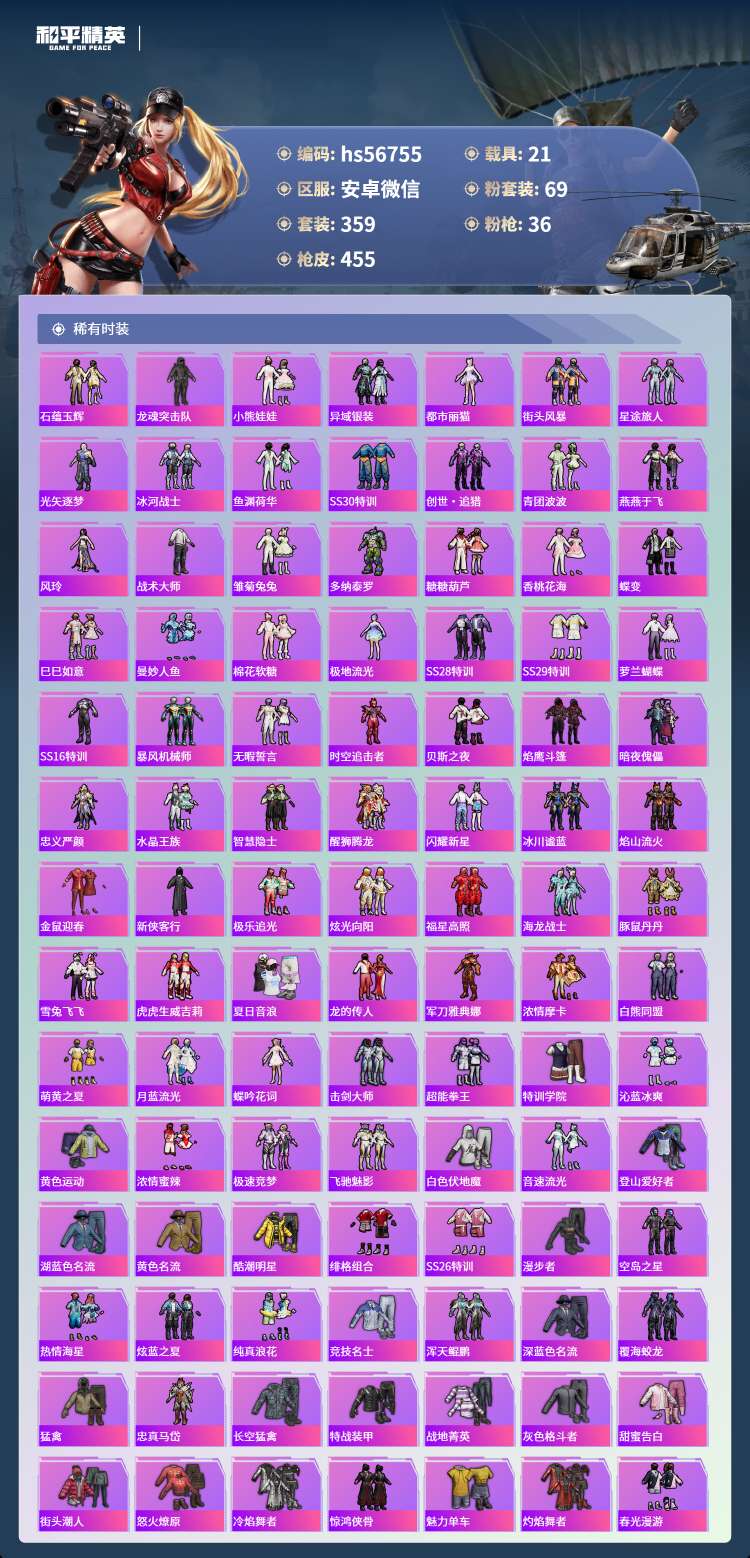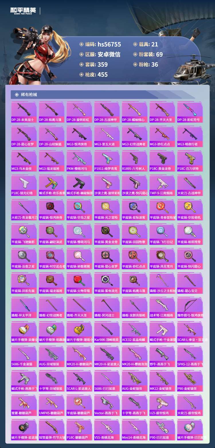 hs56755 安卓v-21王牌印记-2红装-69粉装-36特效枪-21载具-231992热力值-