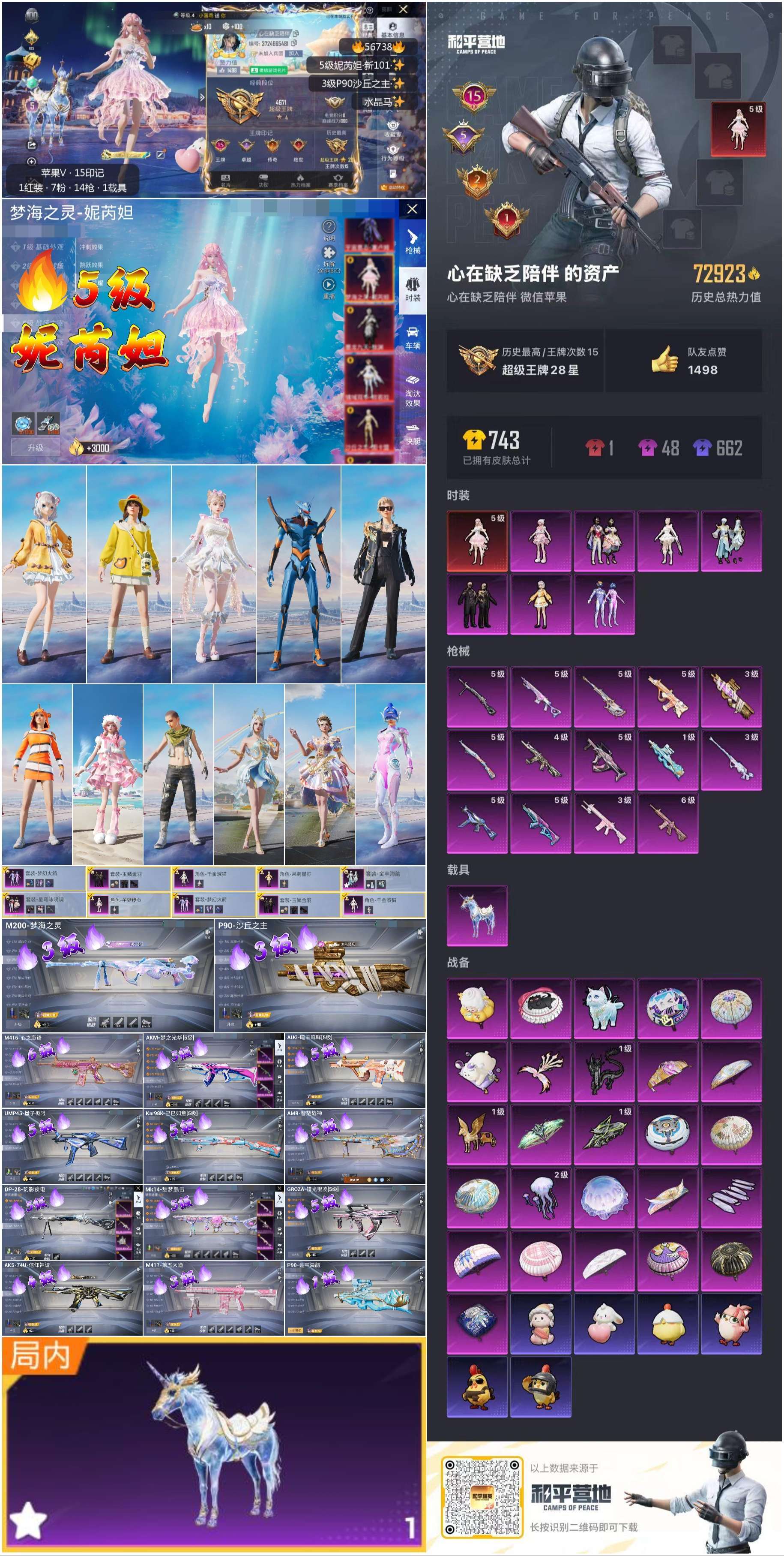 hs56738 苹果v-15王牌印记-1红装-7粉装-14特效枪-1载具-73013热力值-124