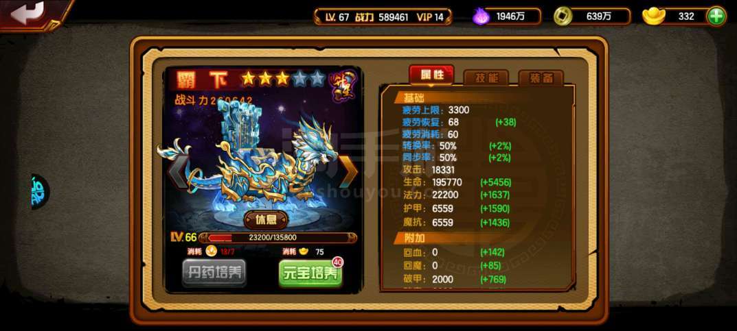 有霸下,极乐,红翅膀起步,装备宝石还不错,3星蛇,500多天大小月卡,提升空间很多,坐等加强起飞