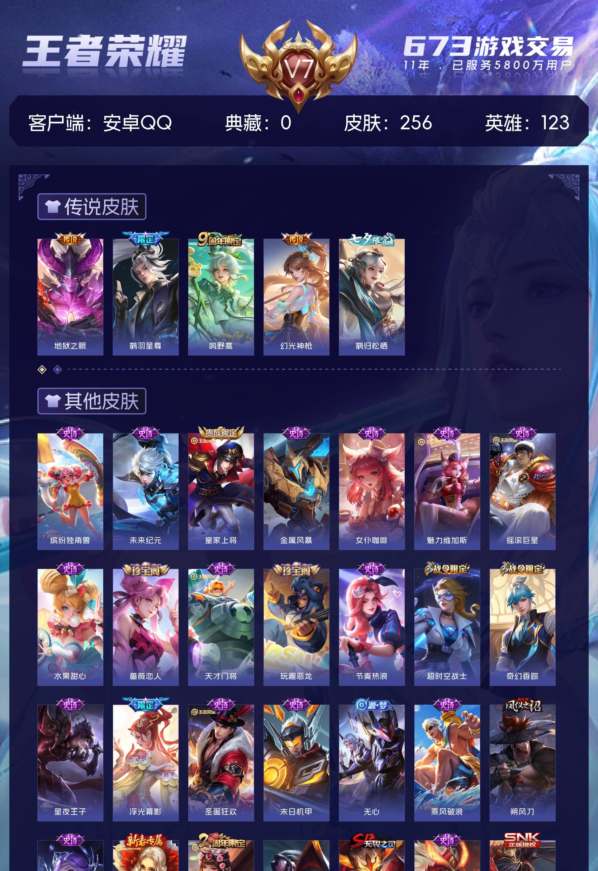 皮肤256 英雄123 至尊星耀 传说5 其他皮肤100-【256皮肤V7 5传说1星元 至尊宝】安卓Q-256皮肤